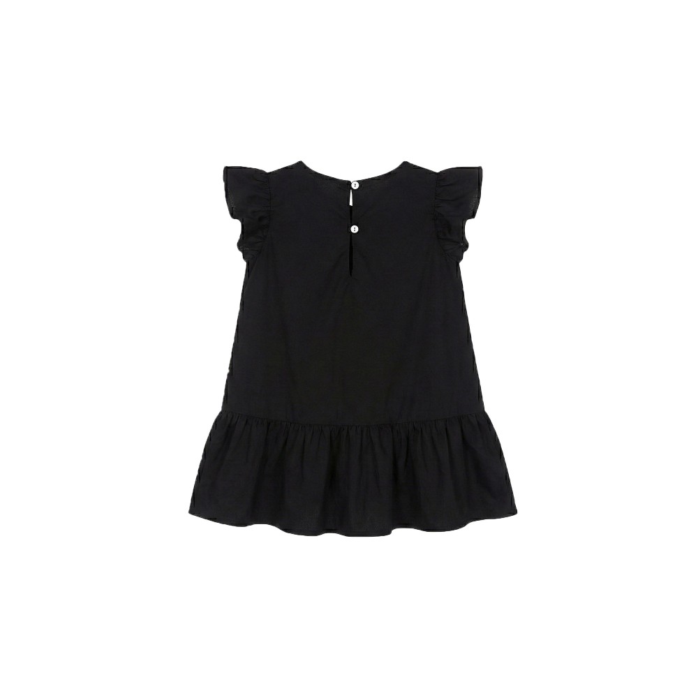 chiusura con bottone, gonna volant plissettata. -