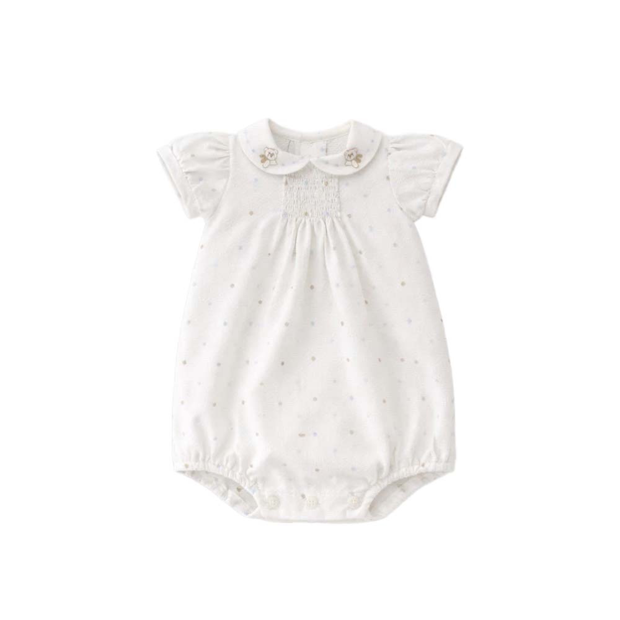Colletto bianco con orsetti e ricami, maniche corte,