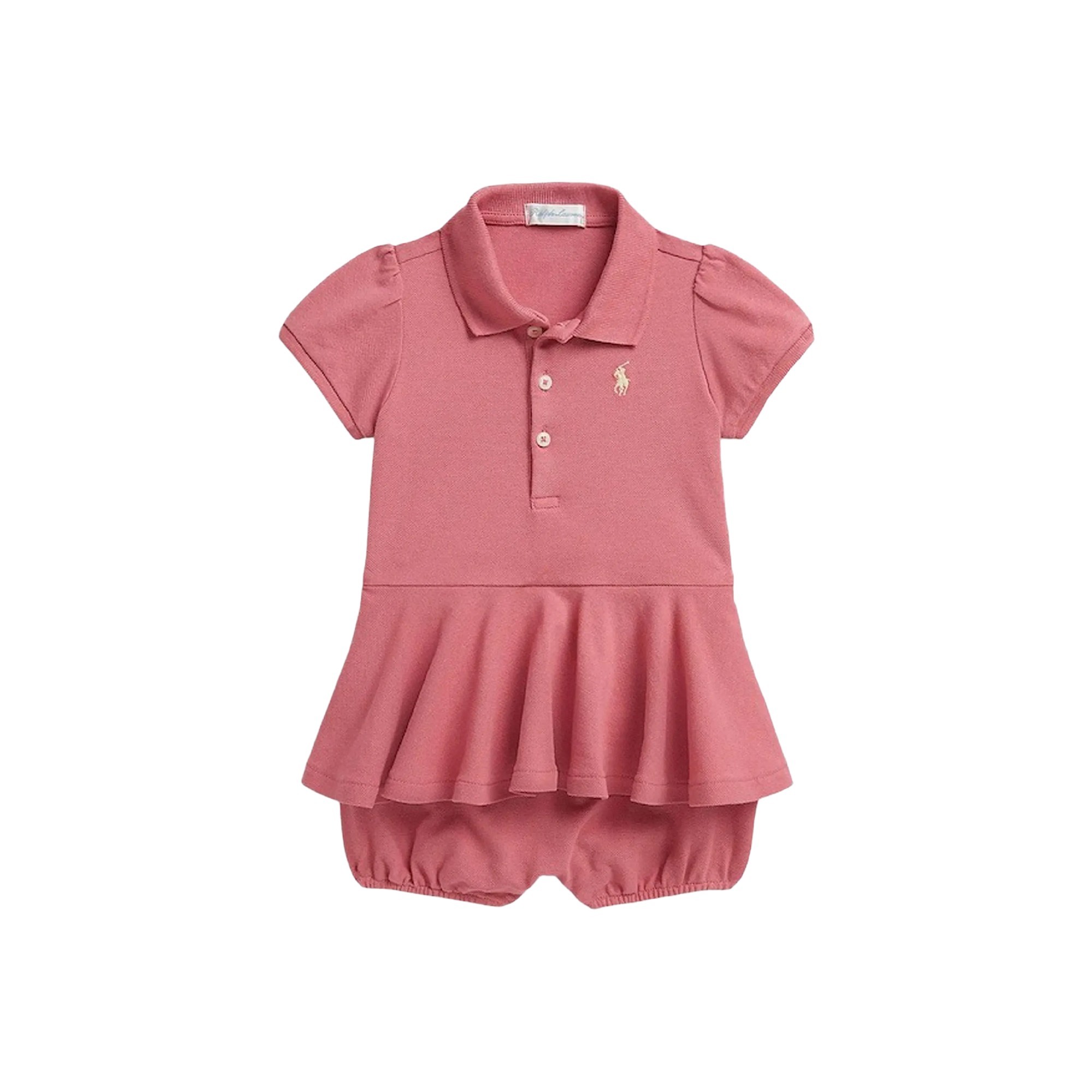 RALPH LAUREN Pagliaccetto rosa salmone con logo neonata