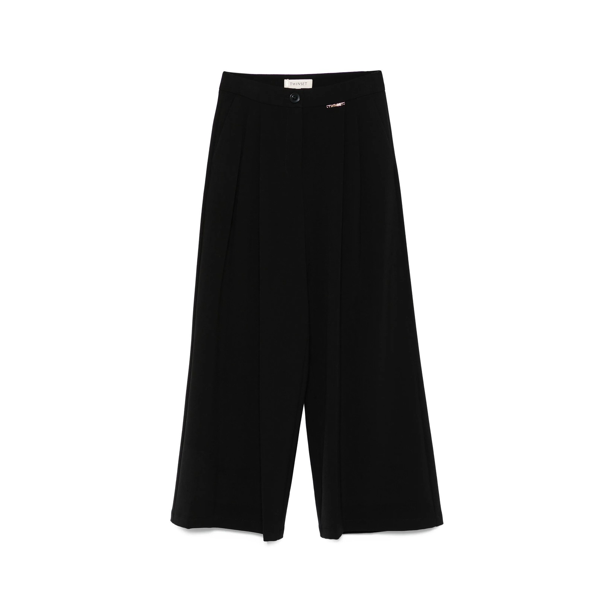 TWIN-SET Pantalone nero palazzo con logo bambina