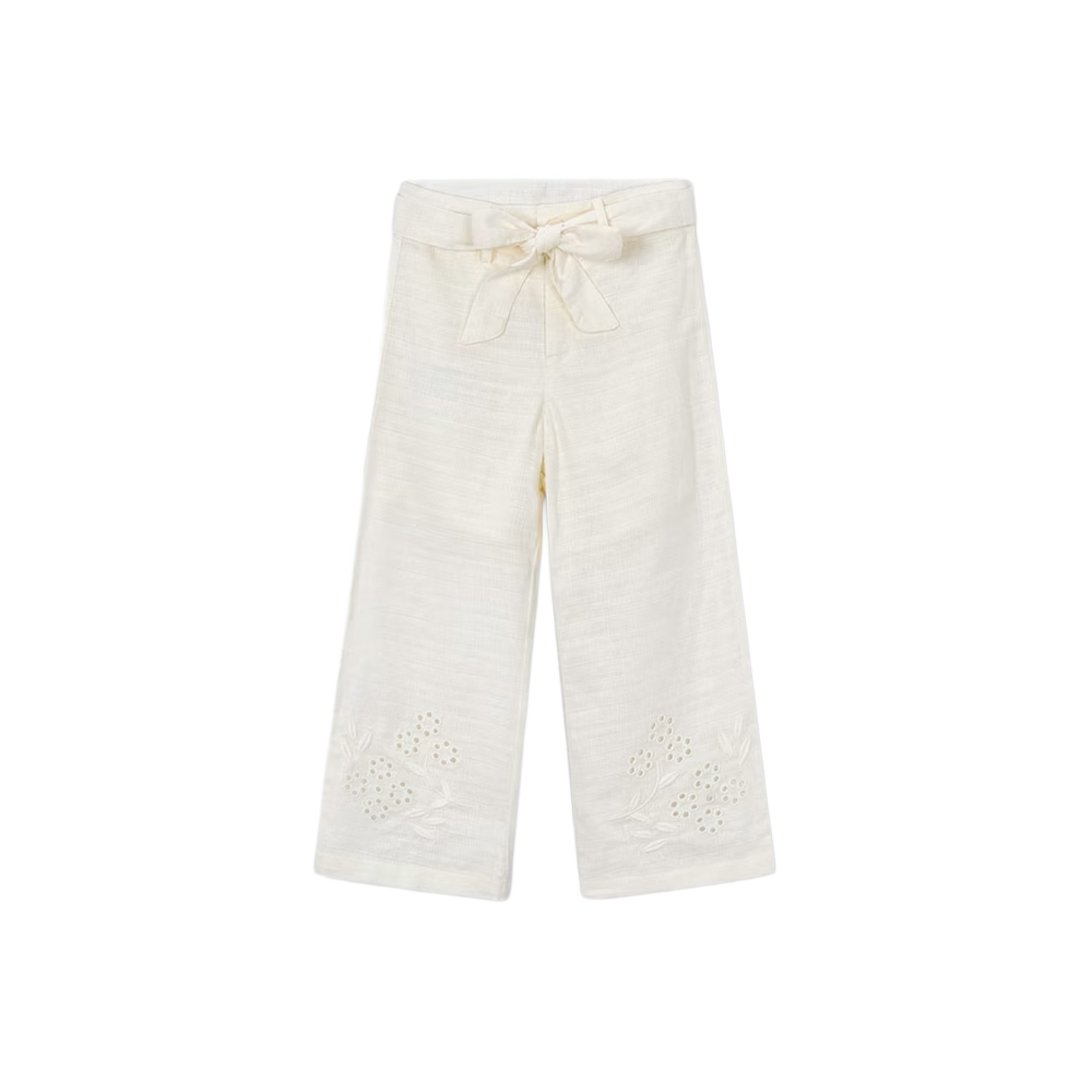 MAYORAL Pantaloni panna ricamati in lino bambina