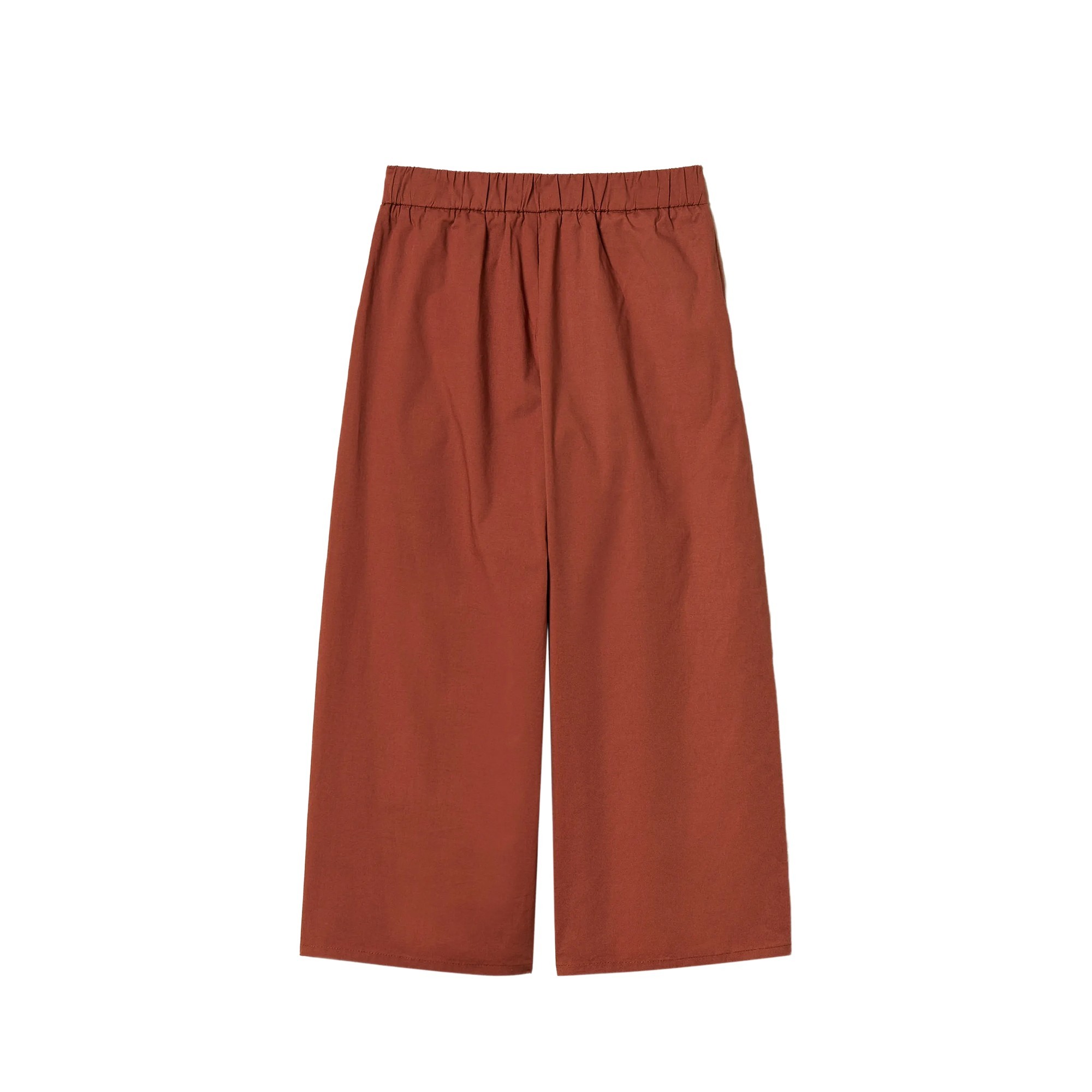 Vita elasticizzata, design wide leg, placchetta logo frontale.