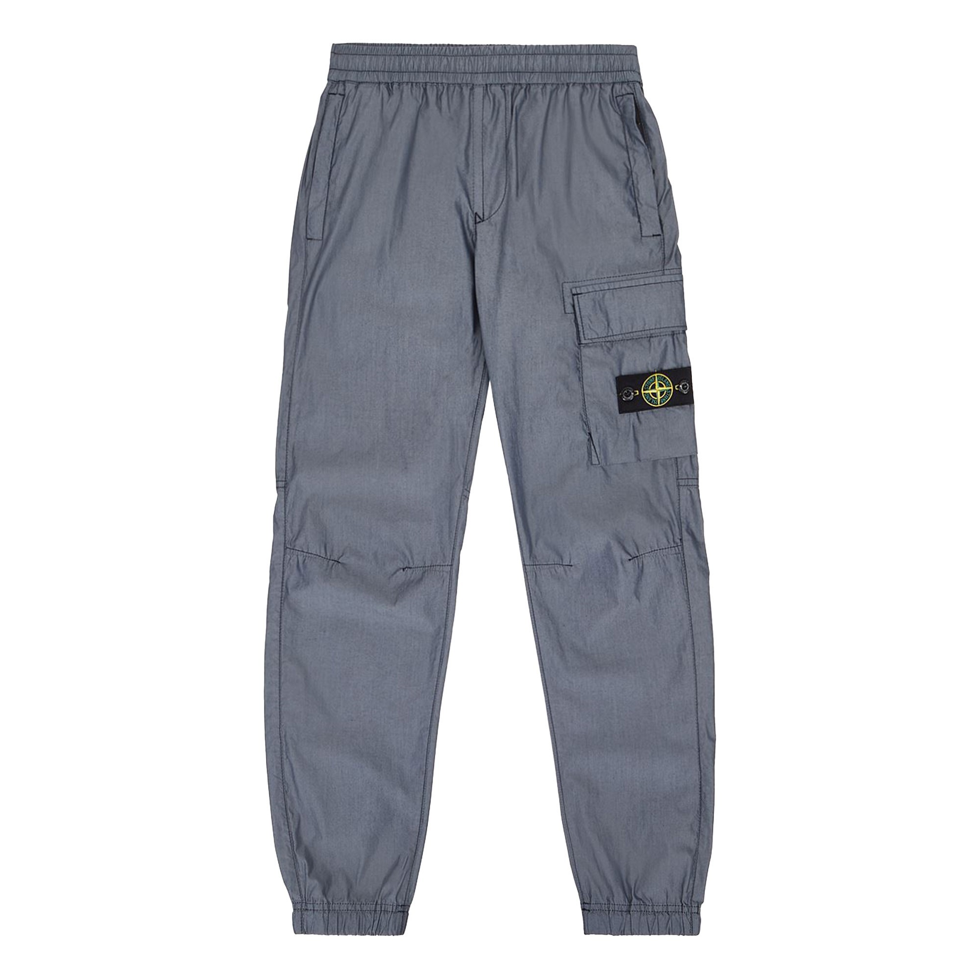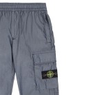 Vestibilità regolare affusolata. Tasche mani in piedi, chiuse da zip nascosta. Una tasca posteriore. Una tasca a soffietto sulla gamba sinistra, chiusa da patella e automatici nascosti; badge Stone Island. Ginocchio sagomato. Vita elasticizzata, con coulisse interna. Fondo gambe elasticizzato.