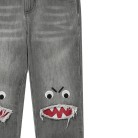Jeans skinny sono dettagliati con divertenti motivi di squalo sulle ginocchia strappate. I jeans sono realizzati in denim di cotone biologico, di provenienza responsabile e coltivato senza pesticidi o sostanze chimiche nocive.