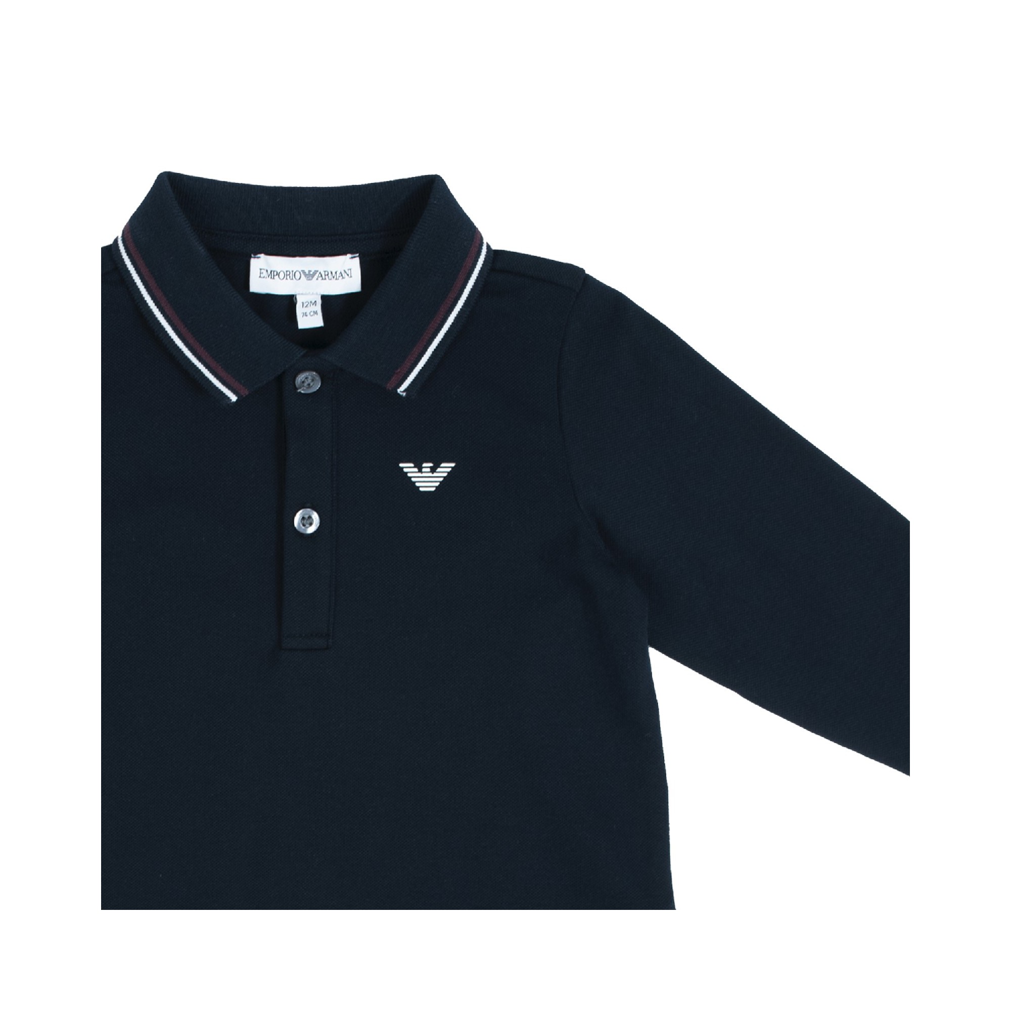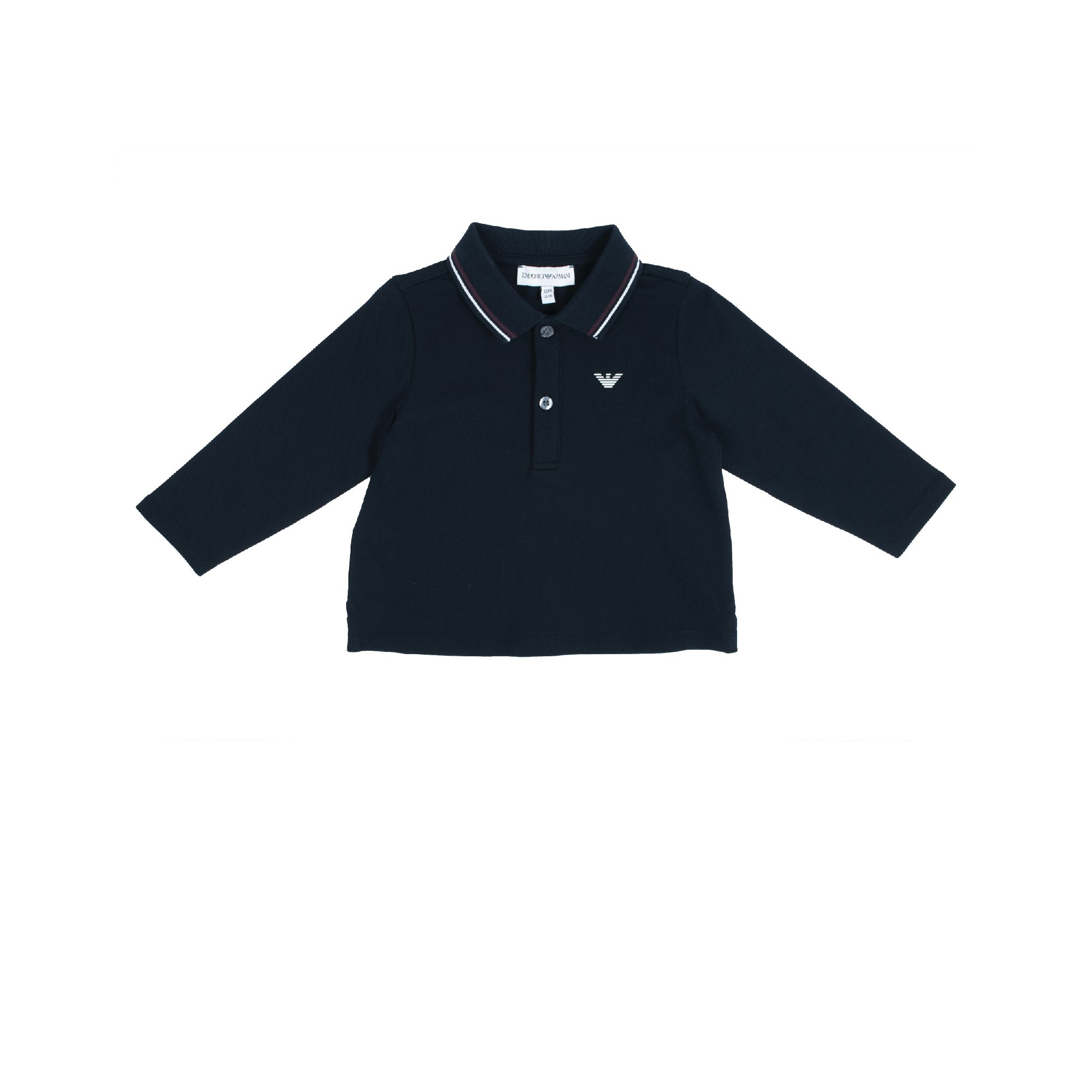 Polo realizzata in piquet di cotone stretch, provvista di collo classico e profili a costine con inserti a righe. Aquila ricamata sul petto. design pulito nelle forme e nei colori, in modo da adattarsi in maniera naturale al guardaroba dei più piccoli in qualsiasi stagione dell'anno.