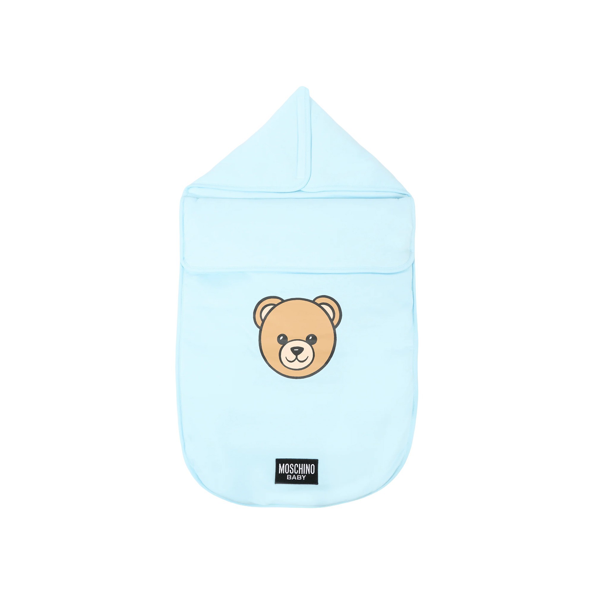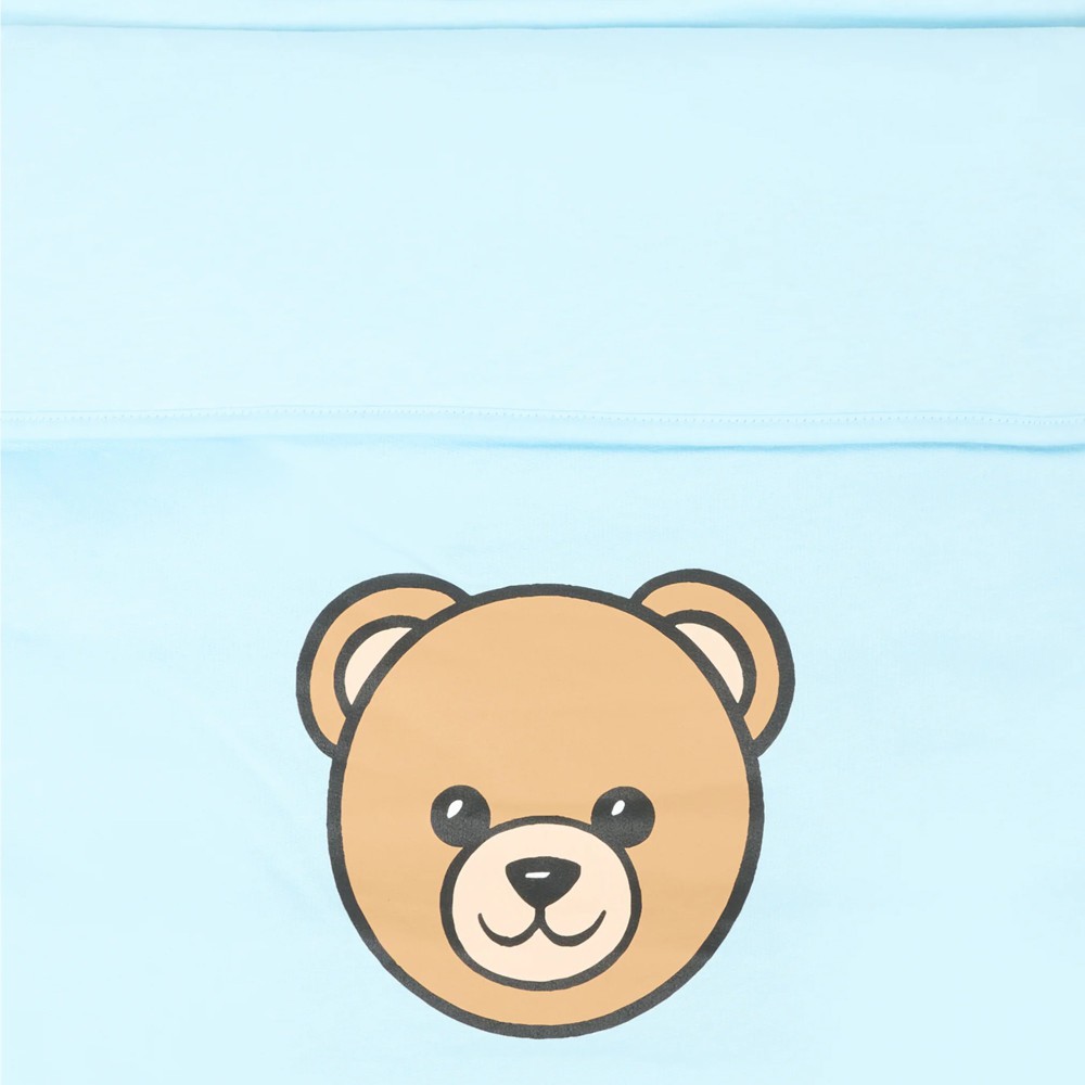 MOSCHINO Sacco nanna celeste con logo Bear neonato
