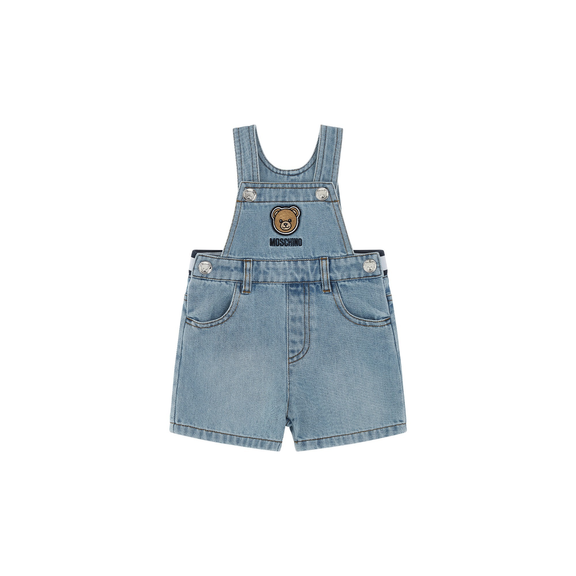 MOSCHINO Salopette in denim con Teddy Bear neonato