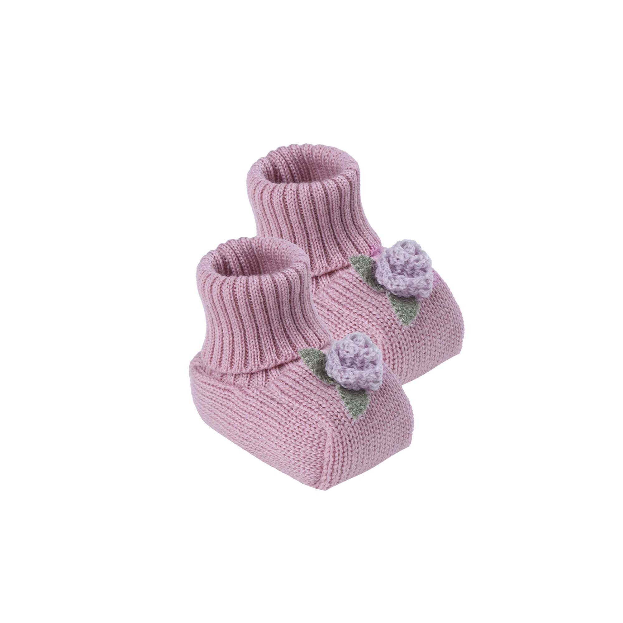 MARLU' Scarpine marsala in filo con fiori neonata