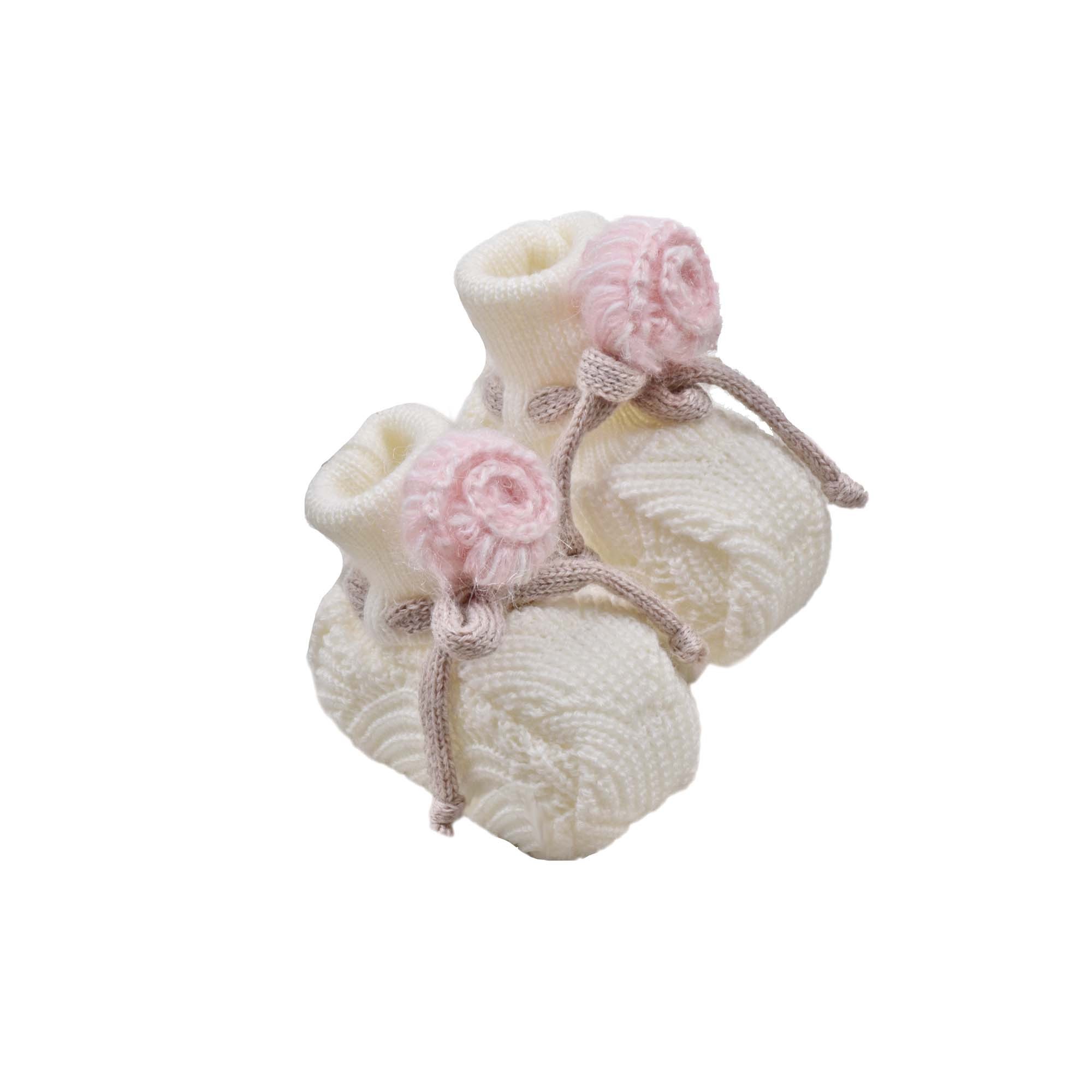 MARLU' Scarpine bianche in filo con fiocco e fiore neonata