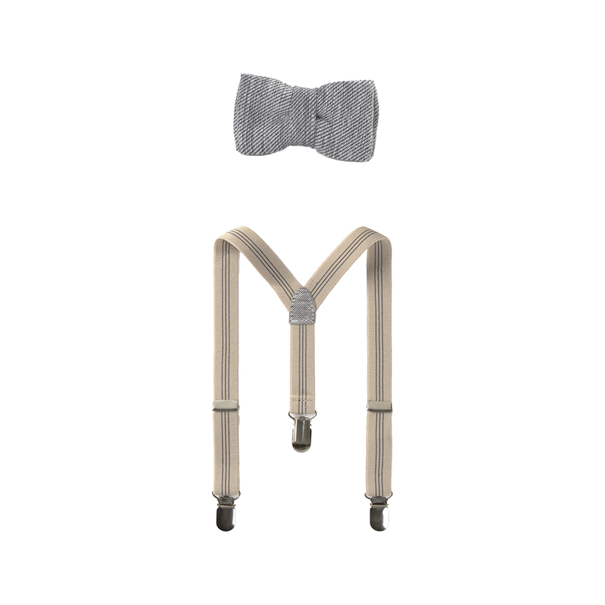 MAYORAL Set beige e grigio bretelle e papillon neonato
