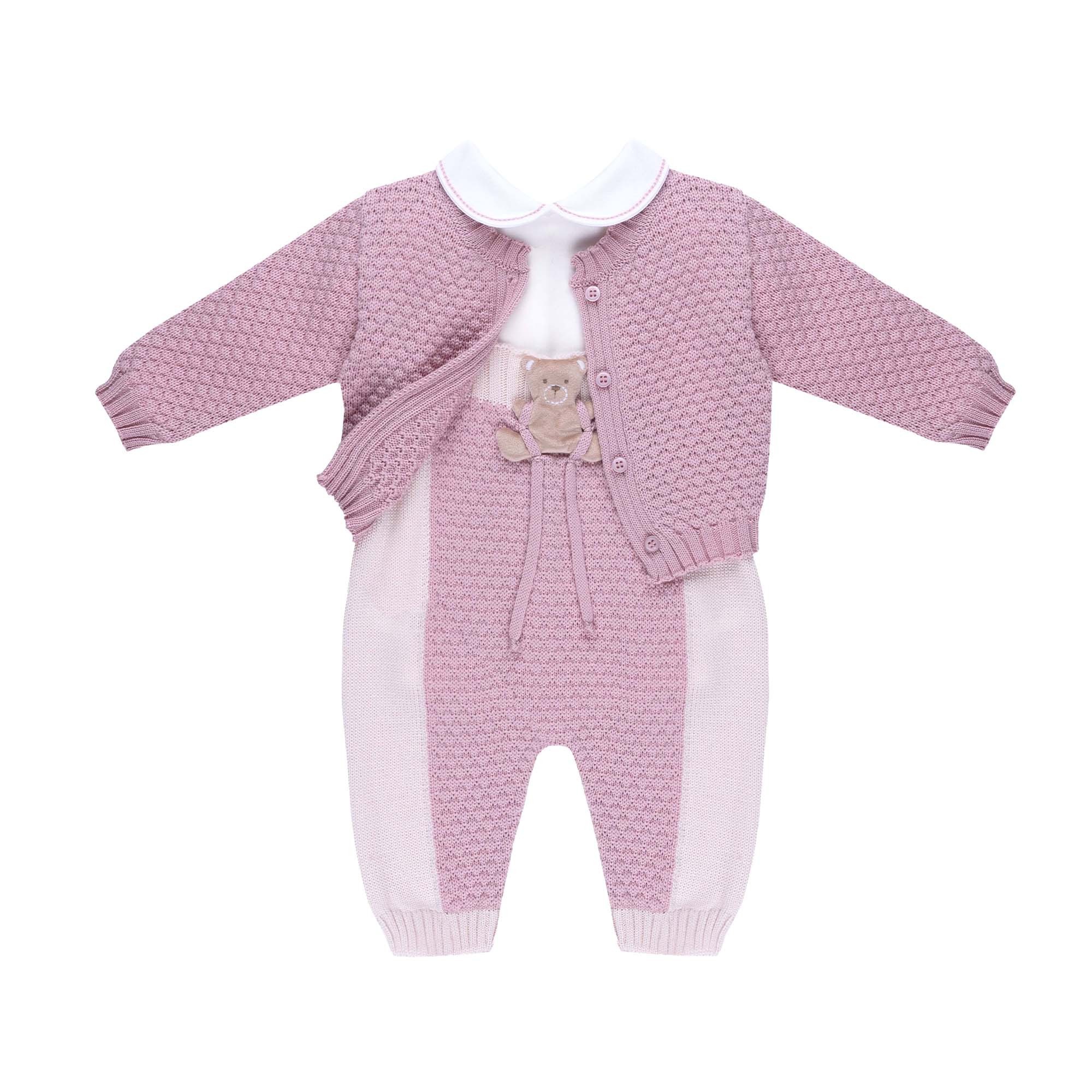MARLU' Set 3 pezzi marsala orsetto con salopette neonata