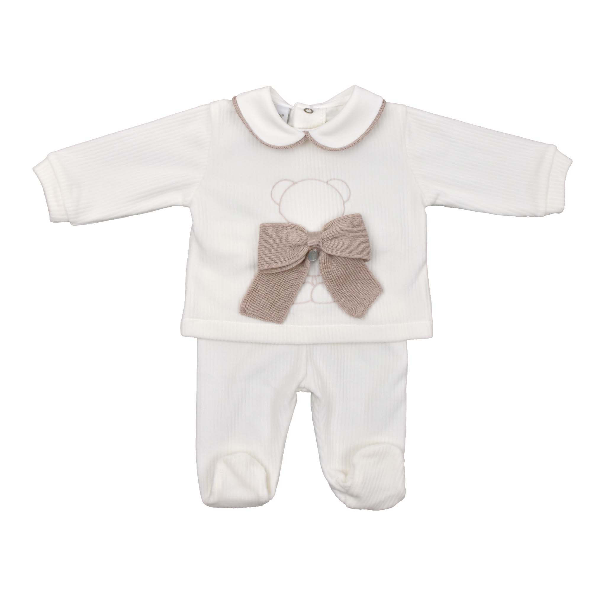 MARLU' Set 2 pezzi bianco con fiocco neonato