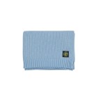 copertina in maglia con orlo a coste e patch logo applicata.