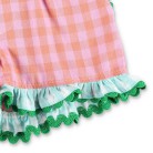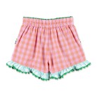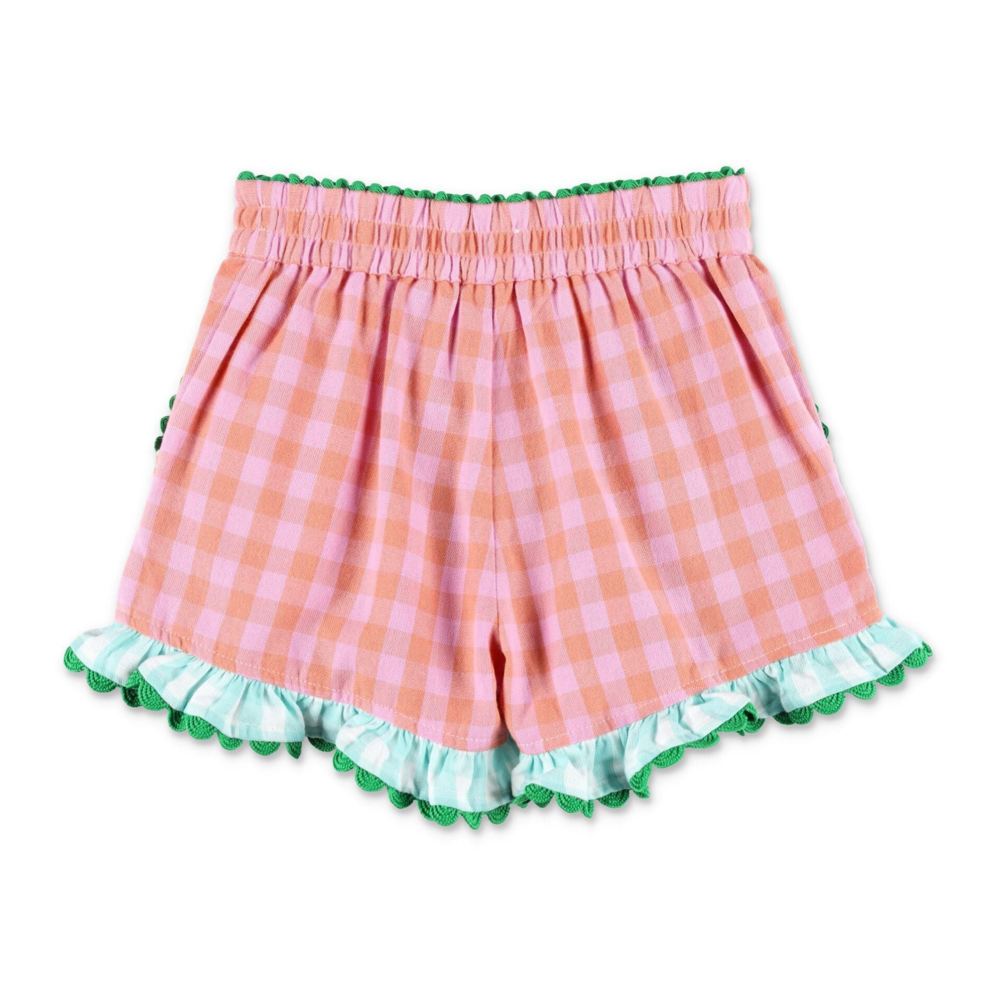 Shorts con ruches multicolore in cotone stampa motivo a quadri con vita elasticizzata tasche a soffietto ai lati rifinitura con ruches