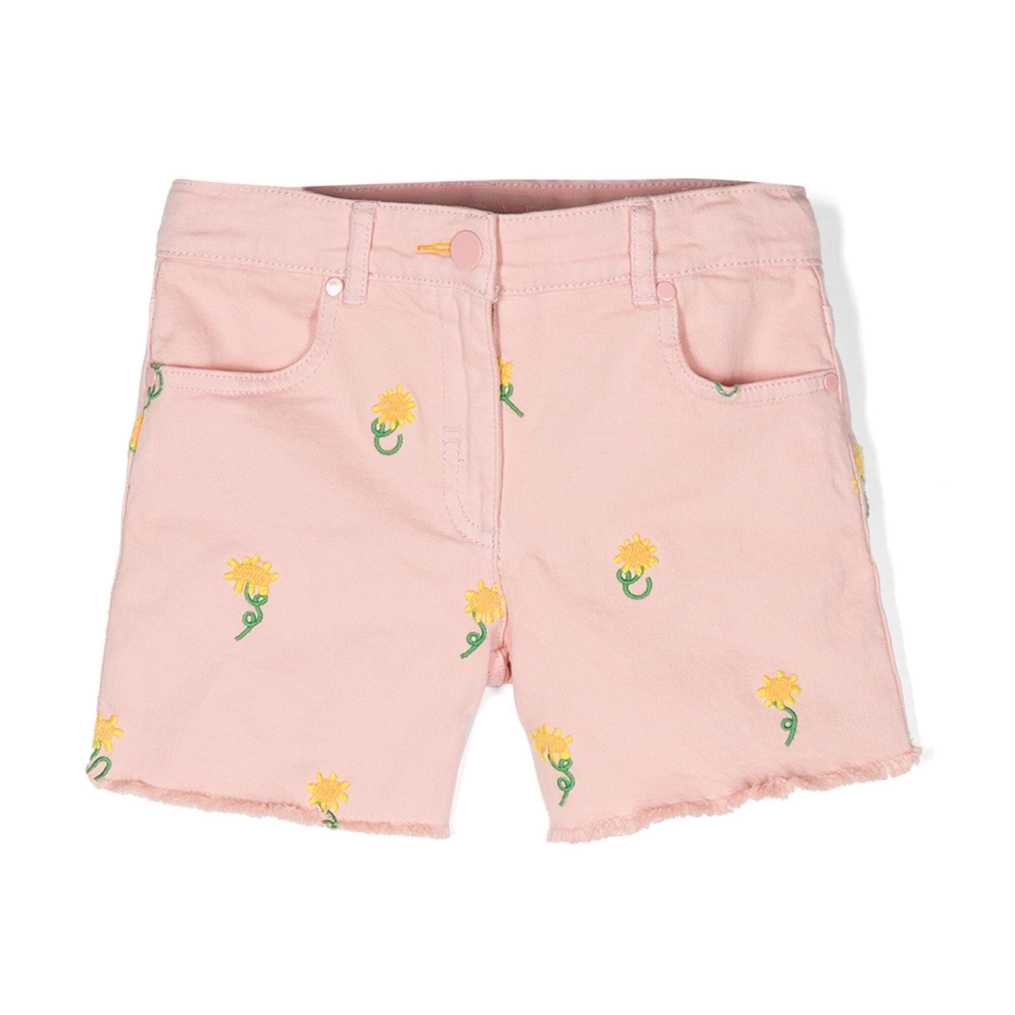 STELLA McCARTNEY Short in cotone rosa pastello ricamato bambina
