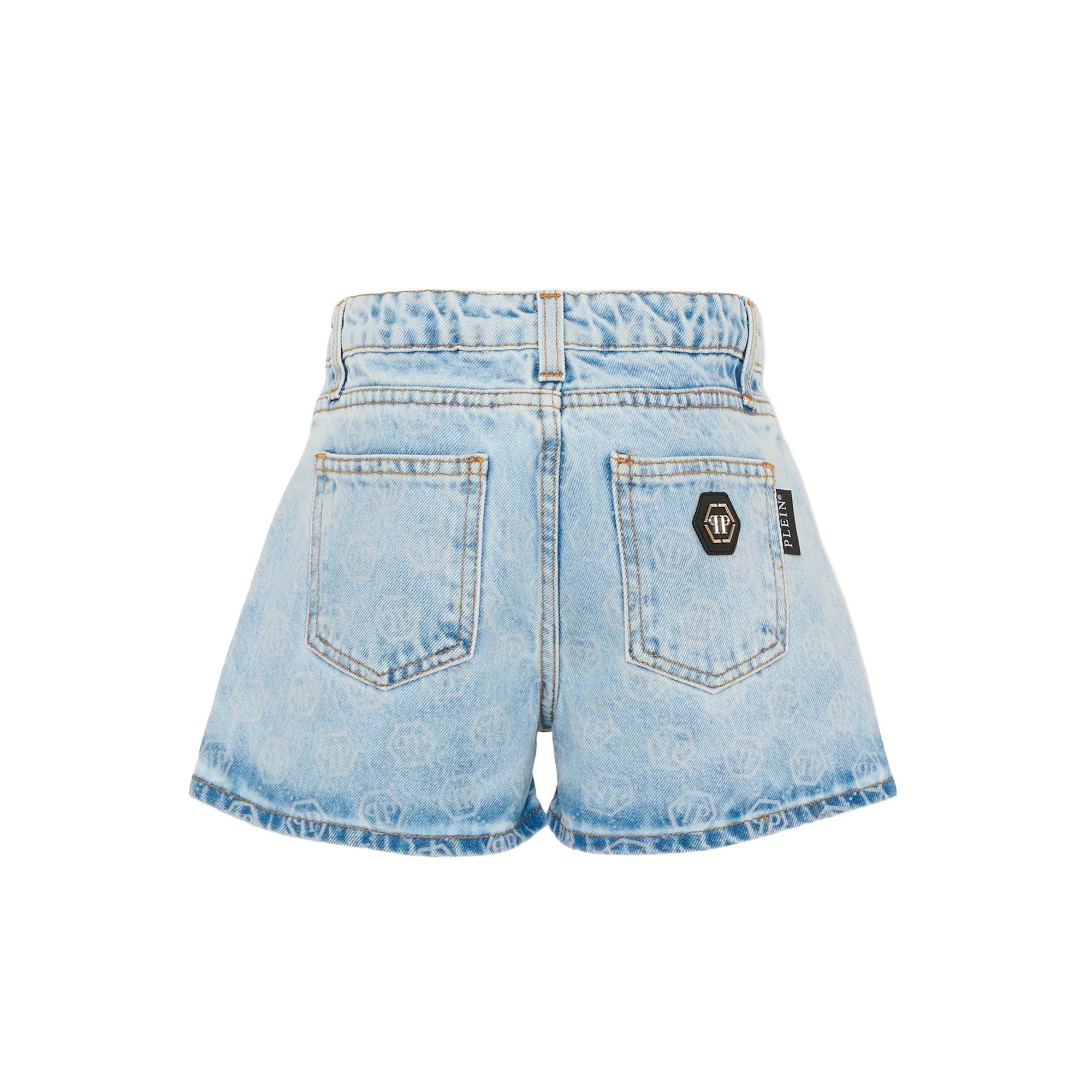 PHILIPP PLEIN Shorts in denim con logo all-over bambina