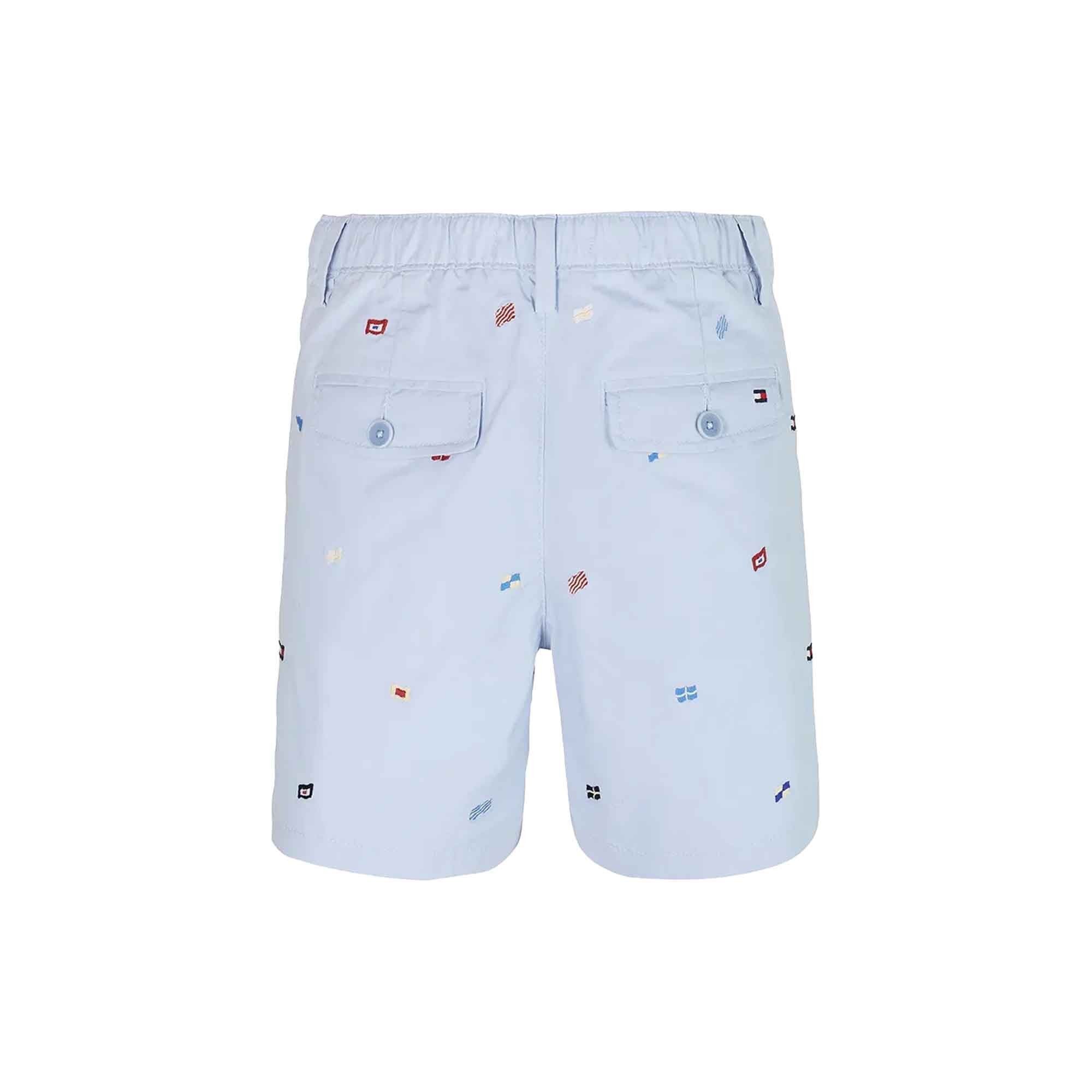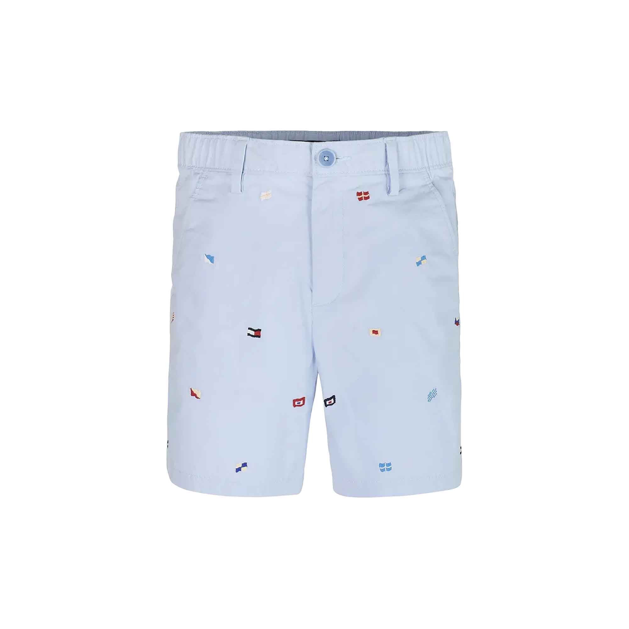 TOMMY HILFIGER Shorts celesti con bandierine ricamate bambino
