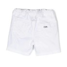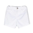 Shorts denim con logo Bianco, bottoni con logo inciso, applicazione con logo, caratteristico ciondolo a testa di aquila, passanti e orlo con risvolto.