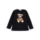 MONNALISA T-shirt nera a maniche lunghe orsetto bambina