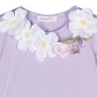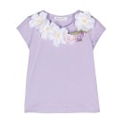 T-shirt elegante glicine di Monnalisa in jersey di cotone stretch modello girocollo con fiorellini applicati sullo scollo, staccabili
