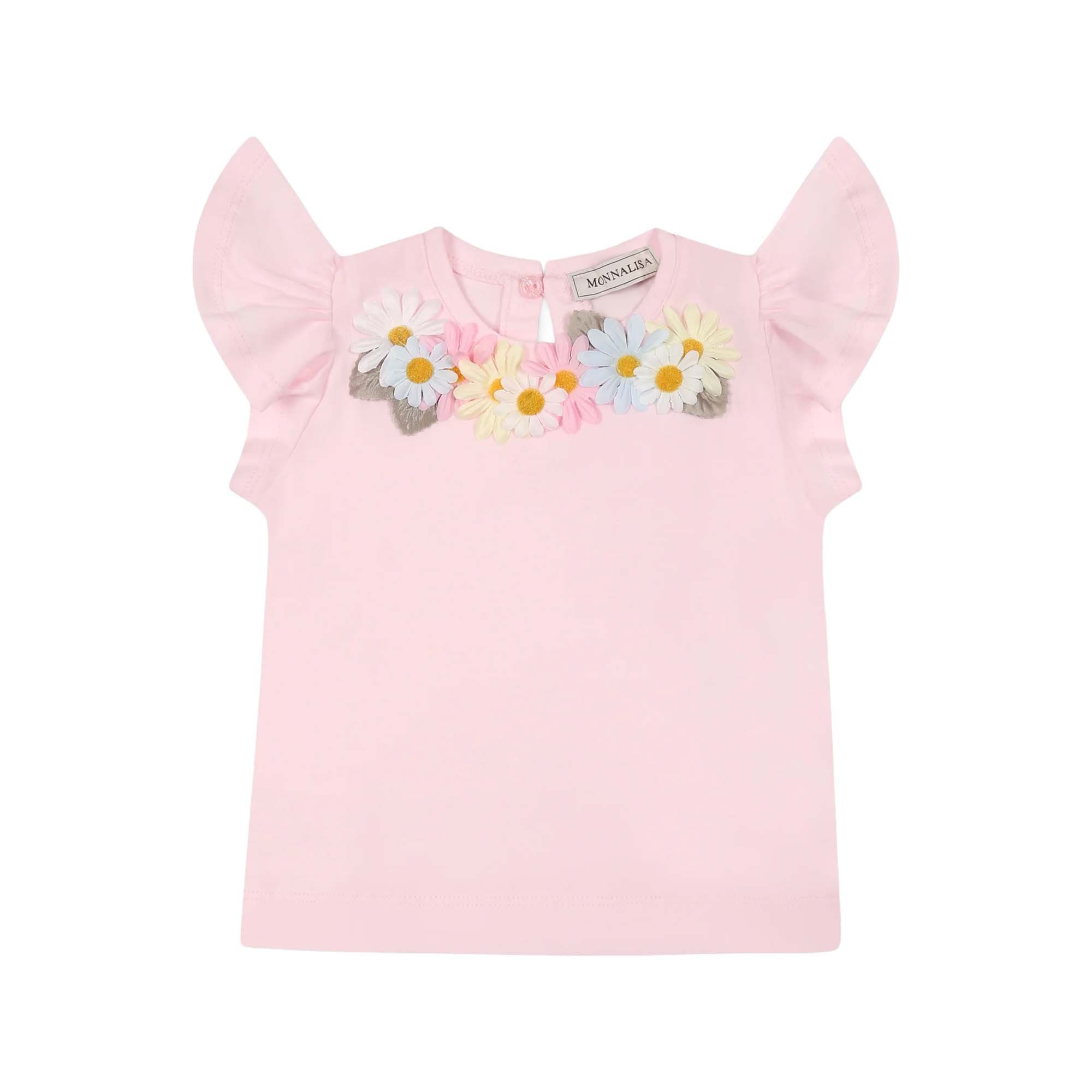 MONNALISA T-shirt rosa con applicazione floreale bambina