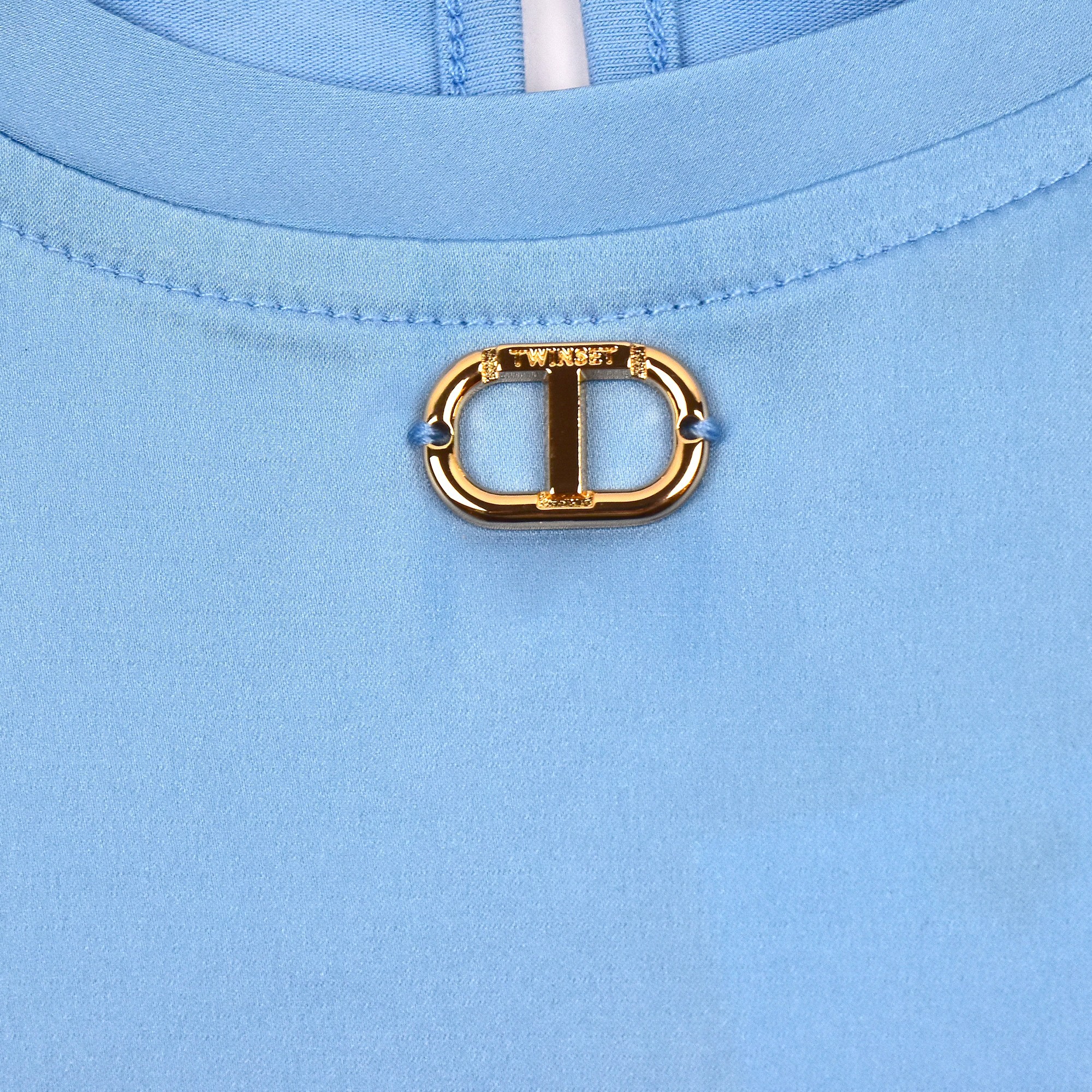 TWIN-SET T-shirt azzurra con design a inserti bambina