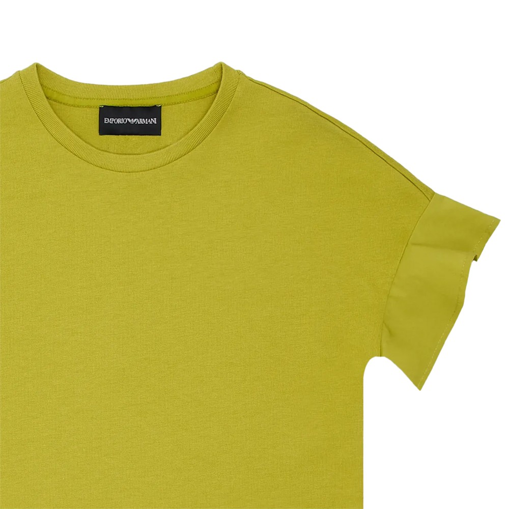 EMPORIO ARMANI T-shirt con volant in jersey con ricamo logo lime bambina