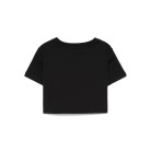 BALMAIN T-shirt nera cropped con logo gommato bambina