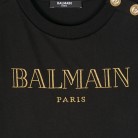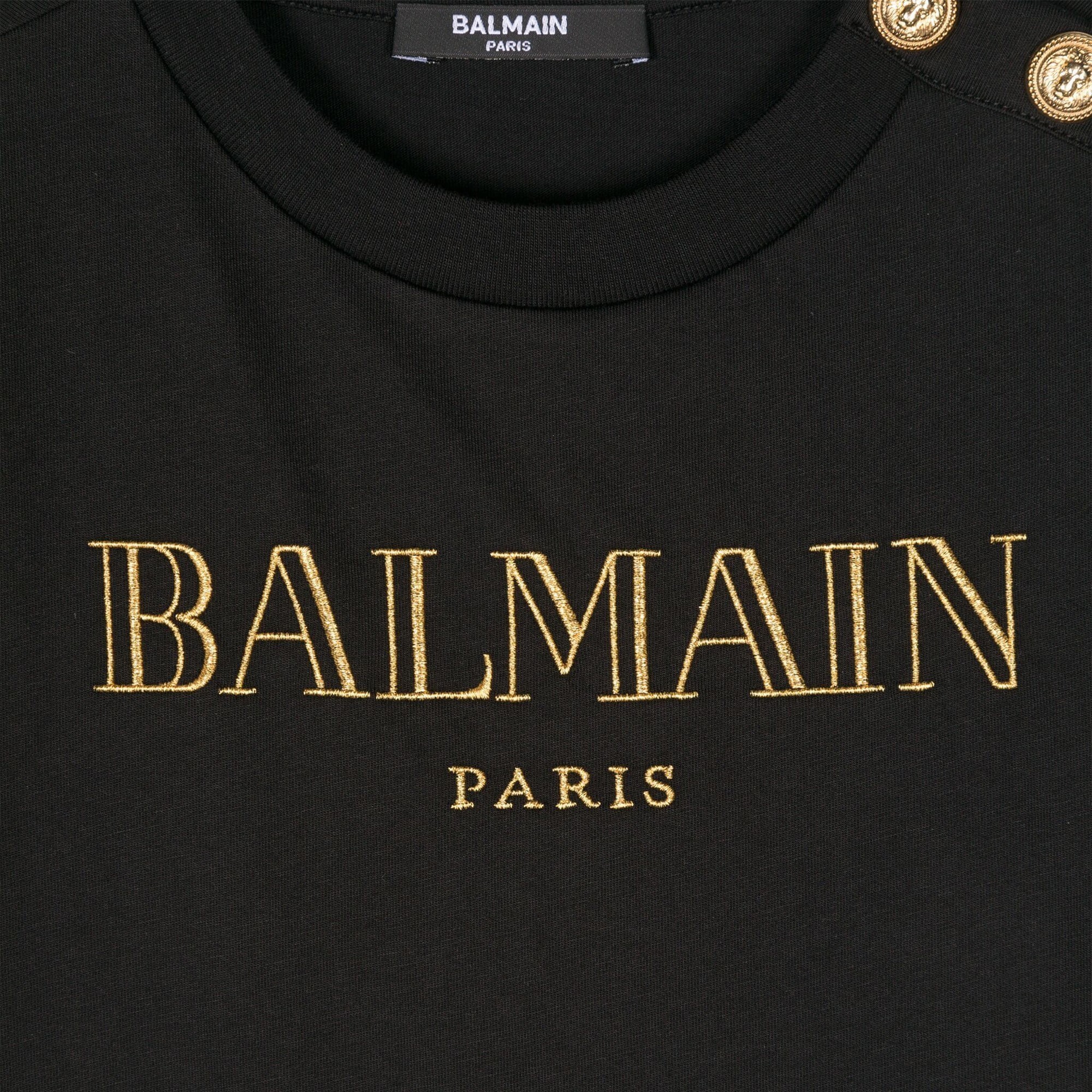 BALMAIN T-shirt nera con ricamo dorato bambina