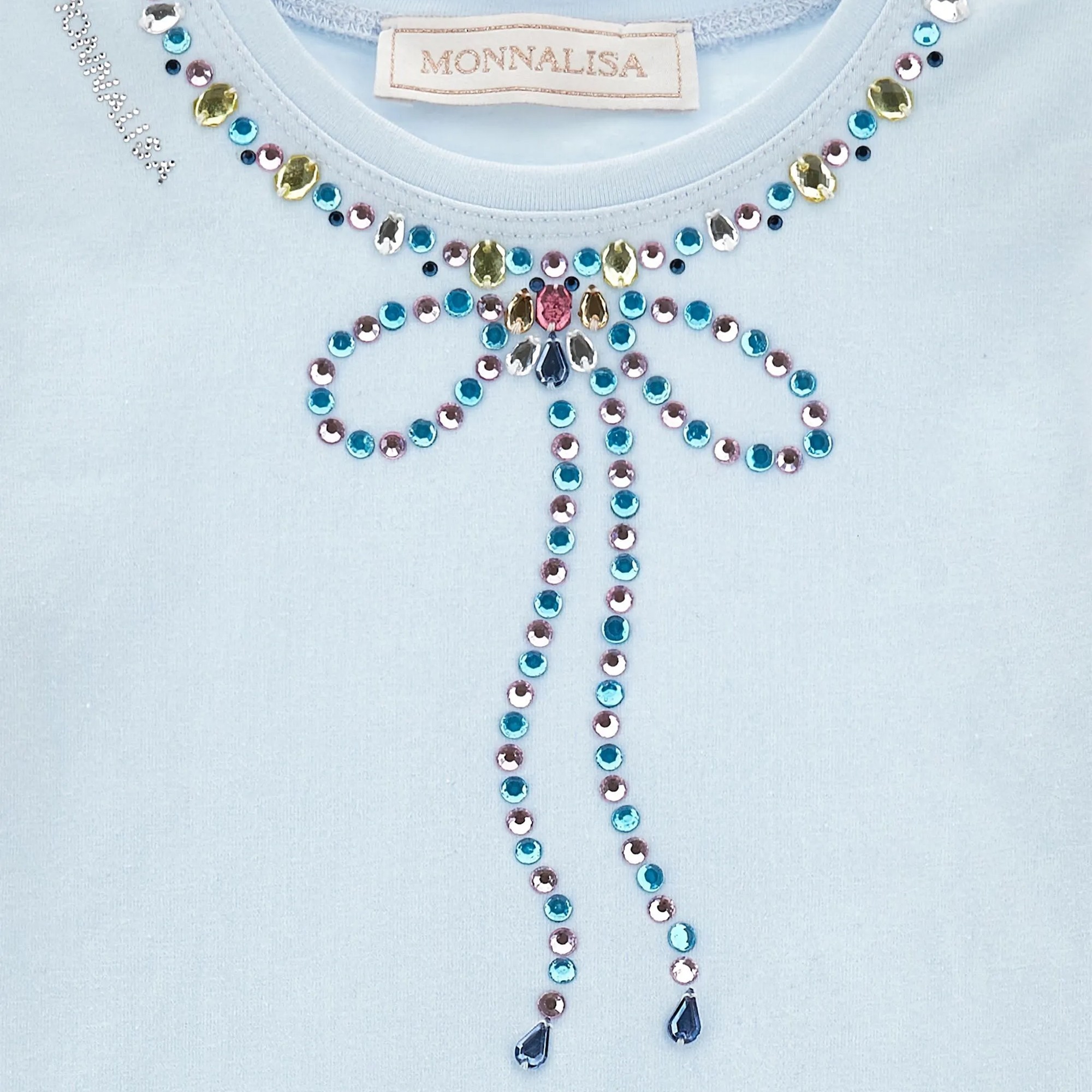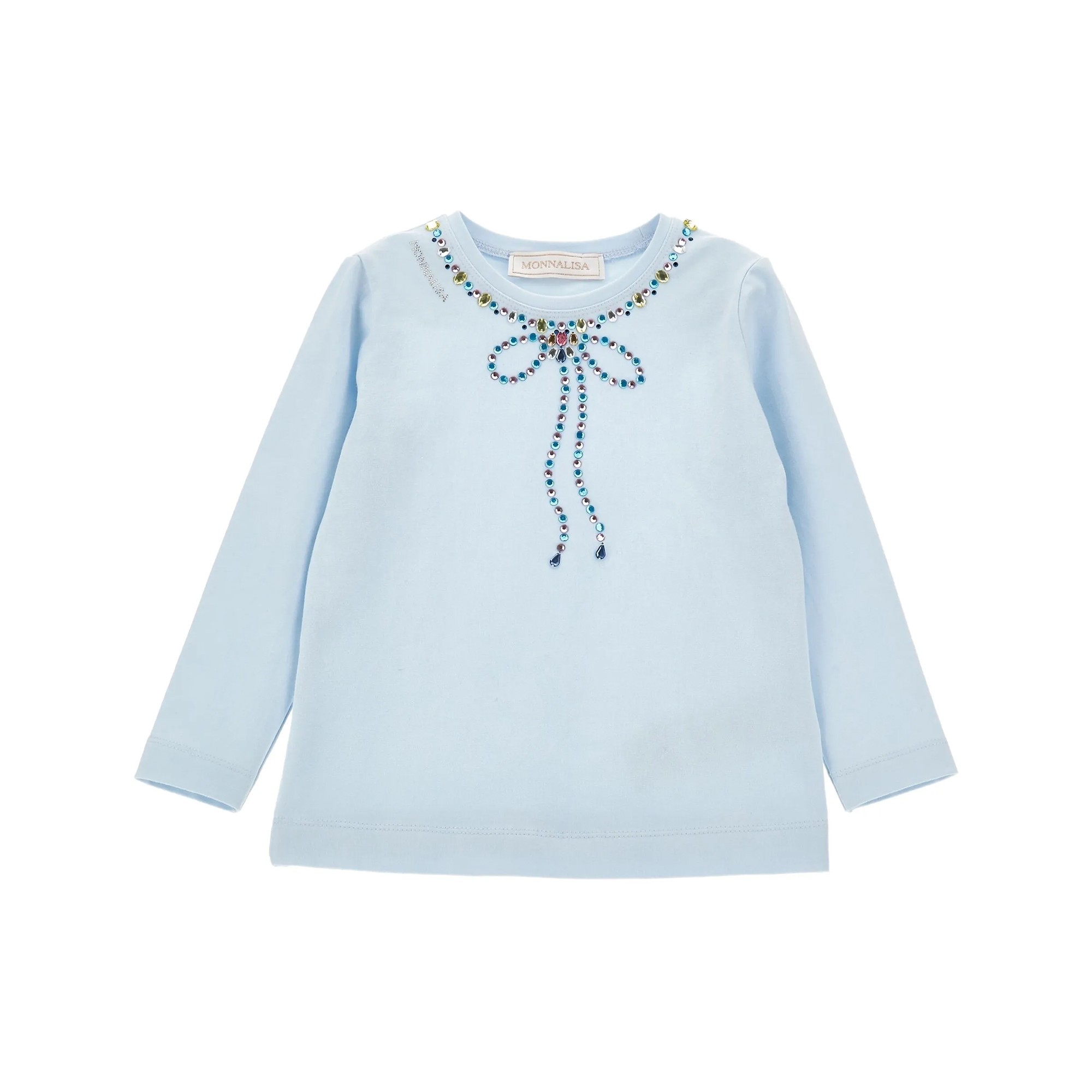 MONNALISA T-shirt celeste a maniche lunghe fiocco bambina