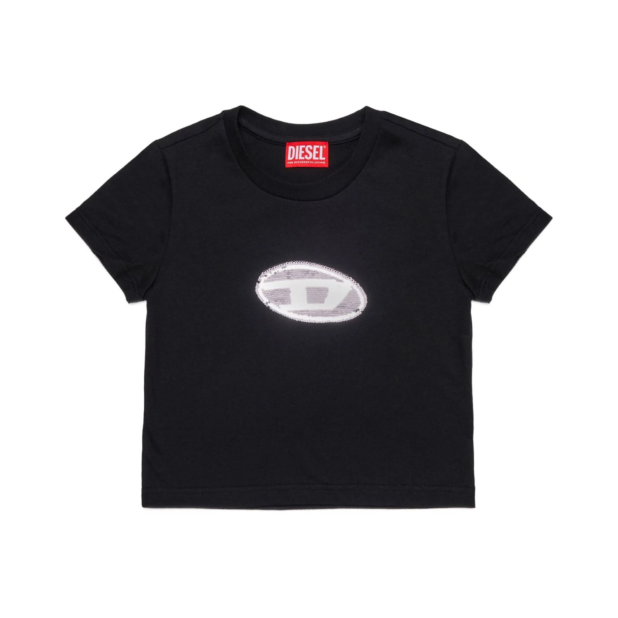 DIESEL T-shirt nera con logo paillettes bambina