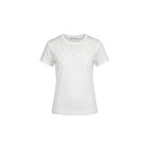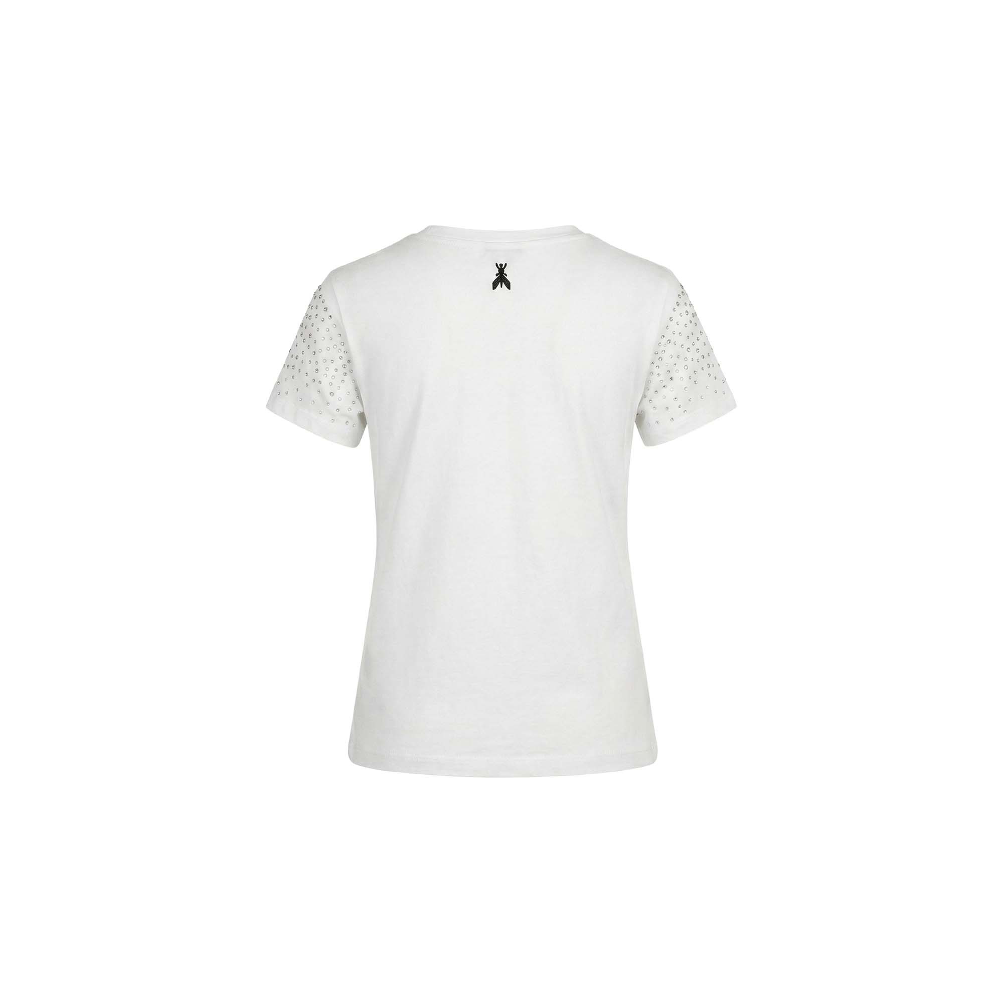 Maniche corte, scollo rotondo, strass sul petto.