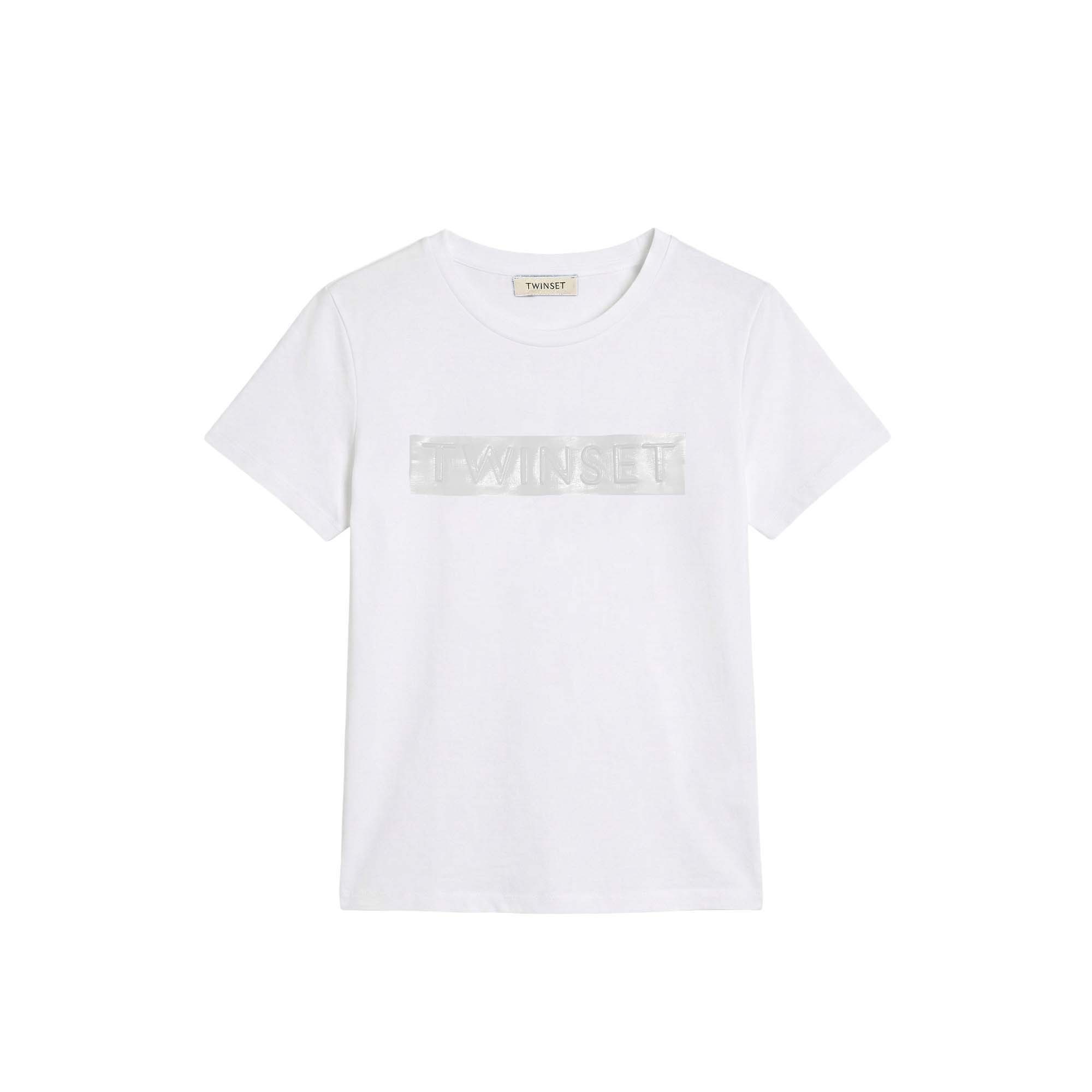 TWIN-SET T-shirt bianca con patch logo bambina