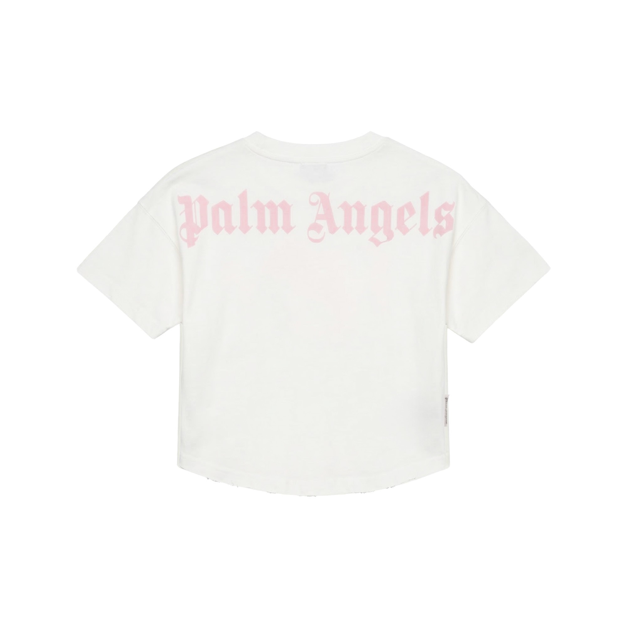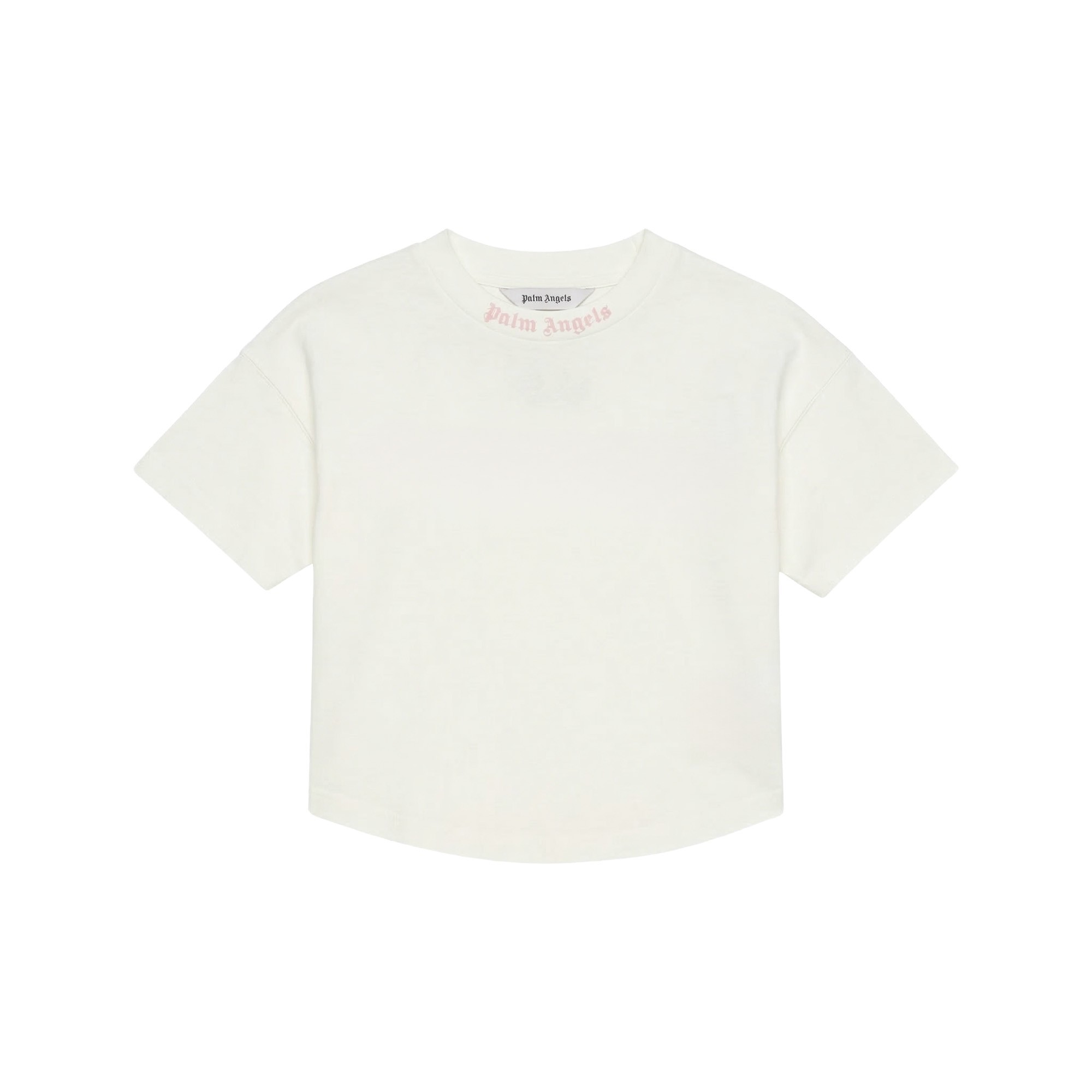 PALM ANGELS T-shirt panna con logo sul collo bambina