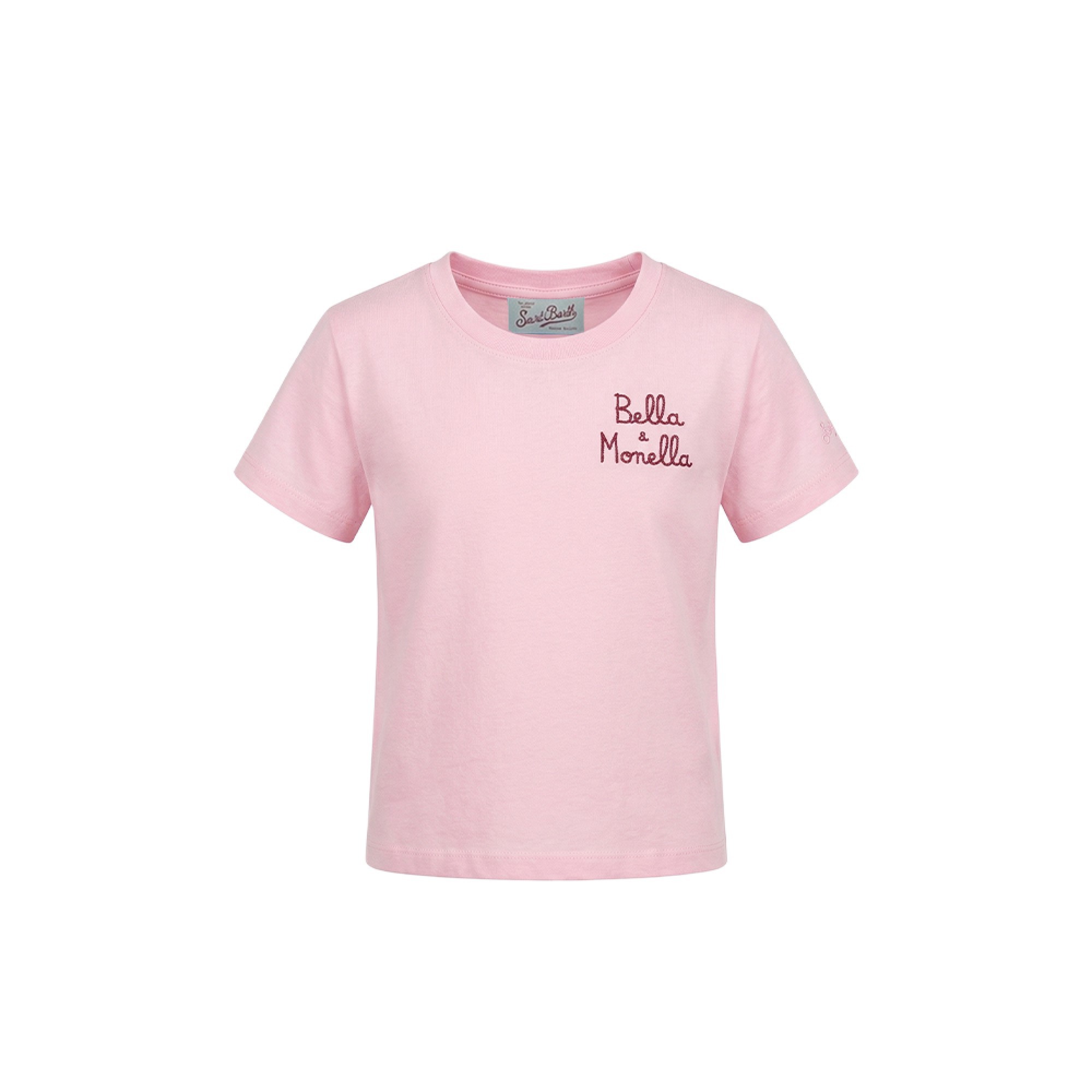 SAINT BARTH T-shirt rosa con ricamo "bella & monella" bambina