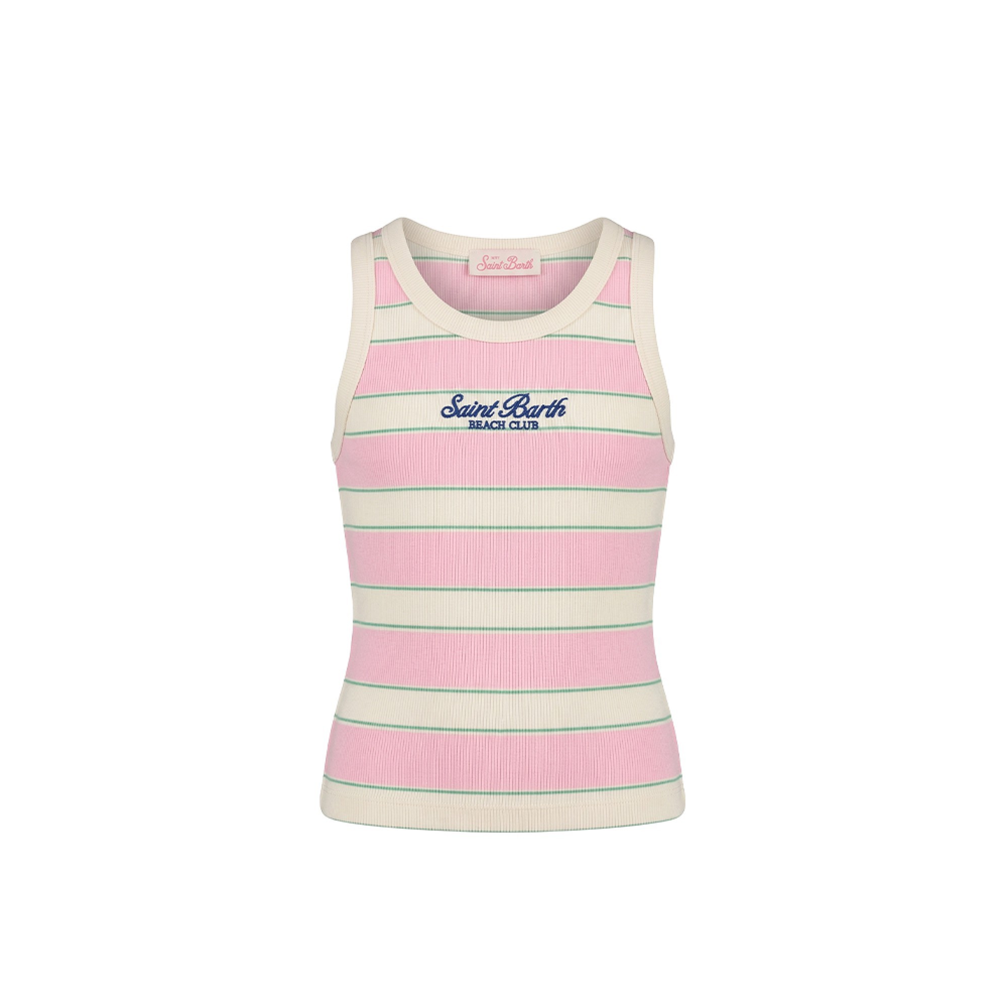 SAINT BARTH Canotta a righe rosa con ricamo bambina