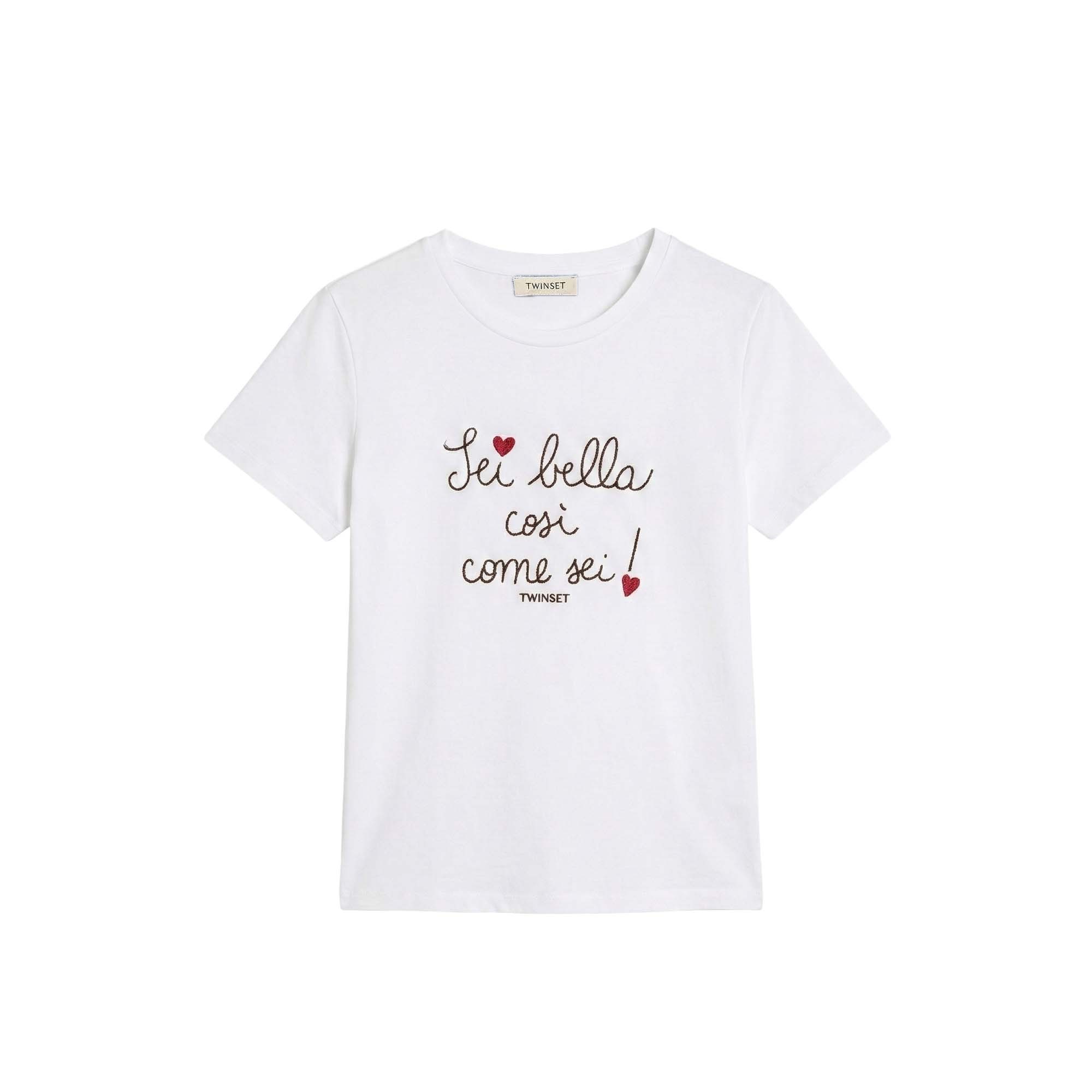 TWIN-SET T-shirt bianca con scritta ricamata bambina