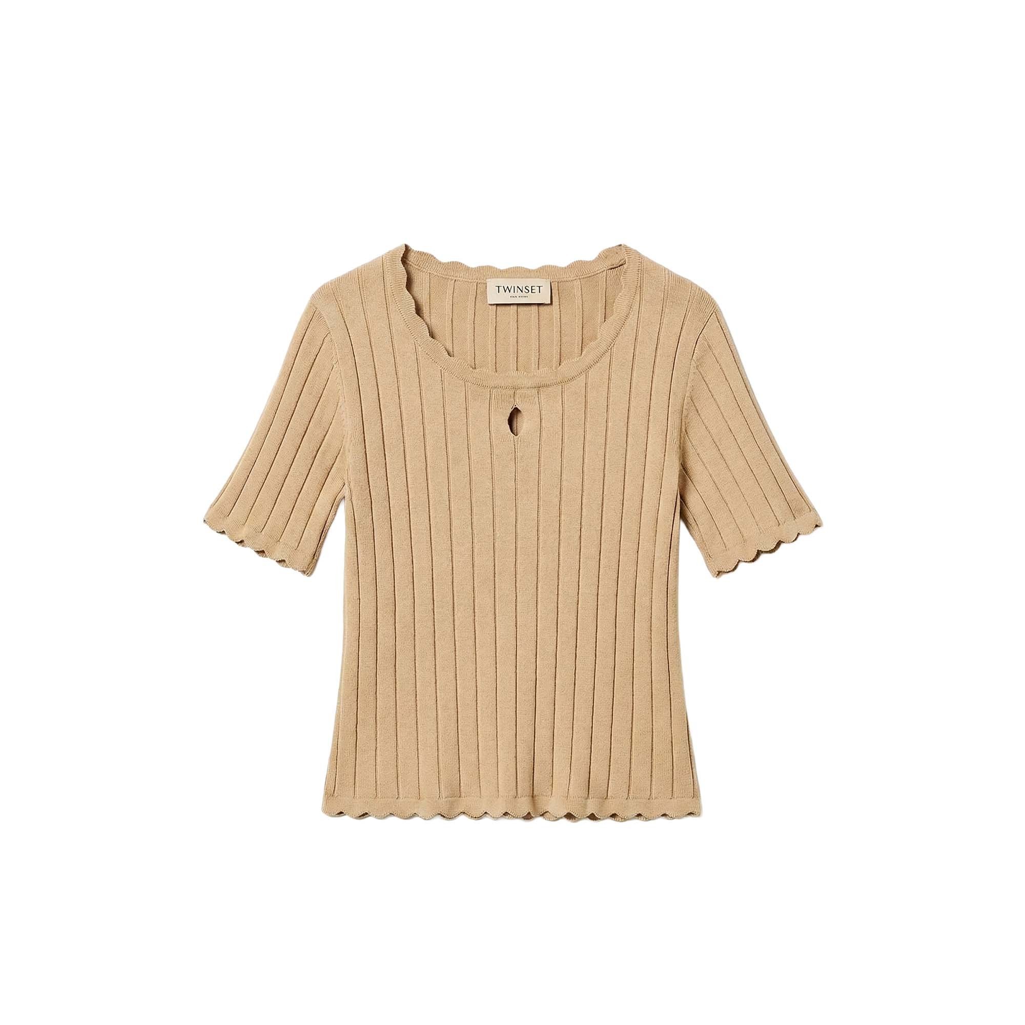 TWIN-SET T-shirt beige a costine bambina