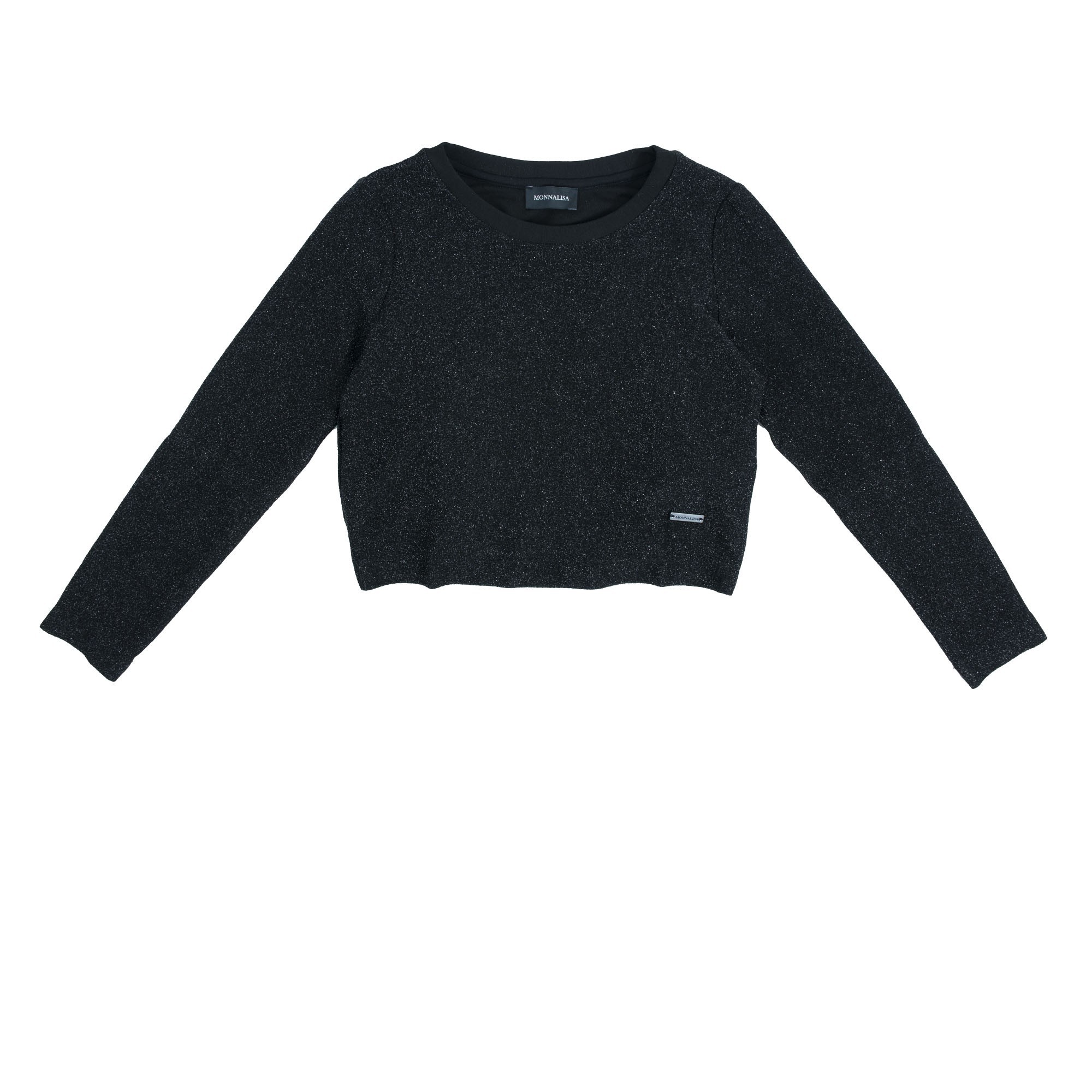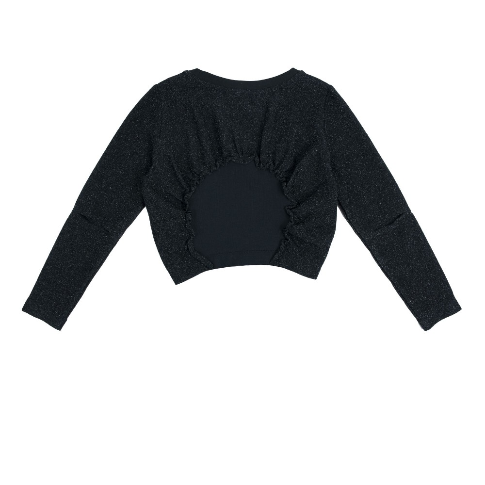 T-shirt girocollo in tessuto lurex elasticizzato manica lunga vestibilità cropped logo in metallo arricciatura dietro