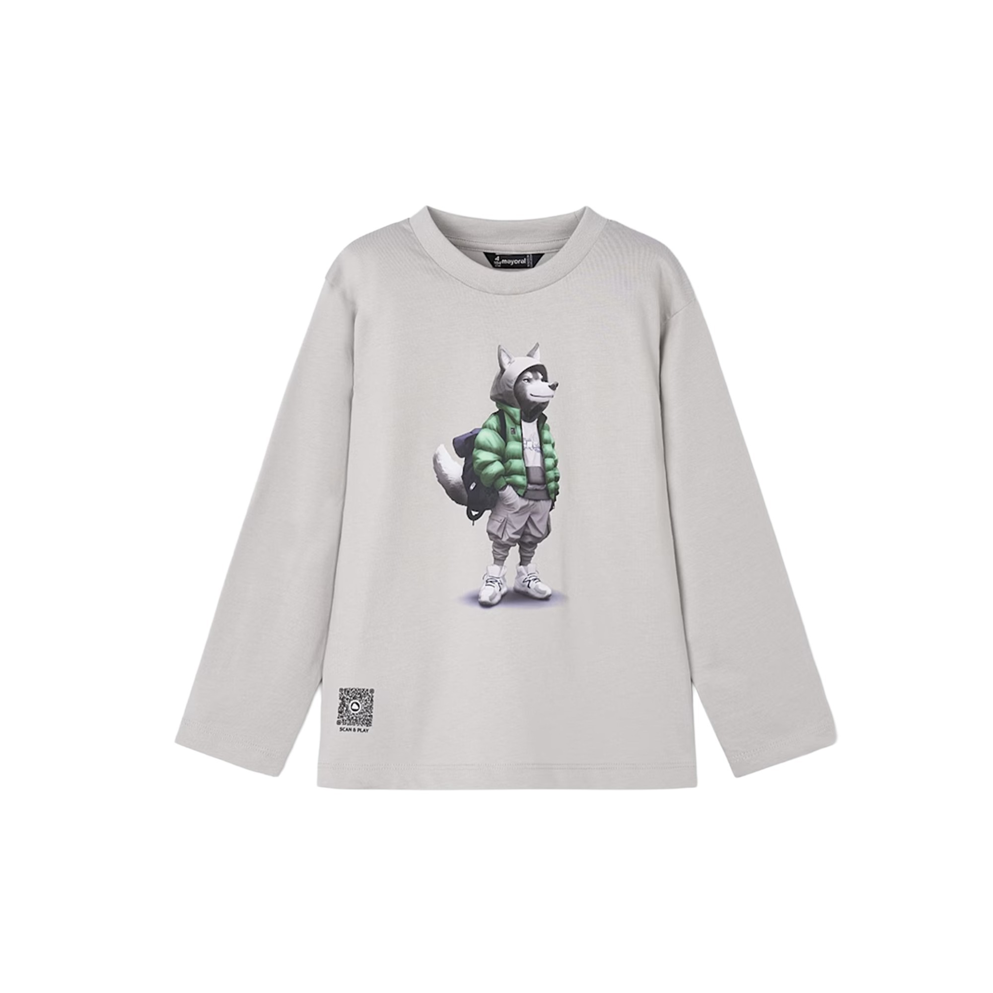 MAYORAL T-shirt grigia a maniche lunghe interattiva bambino