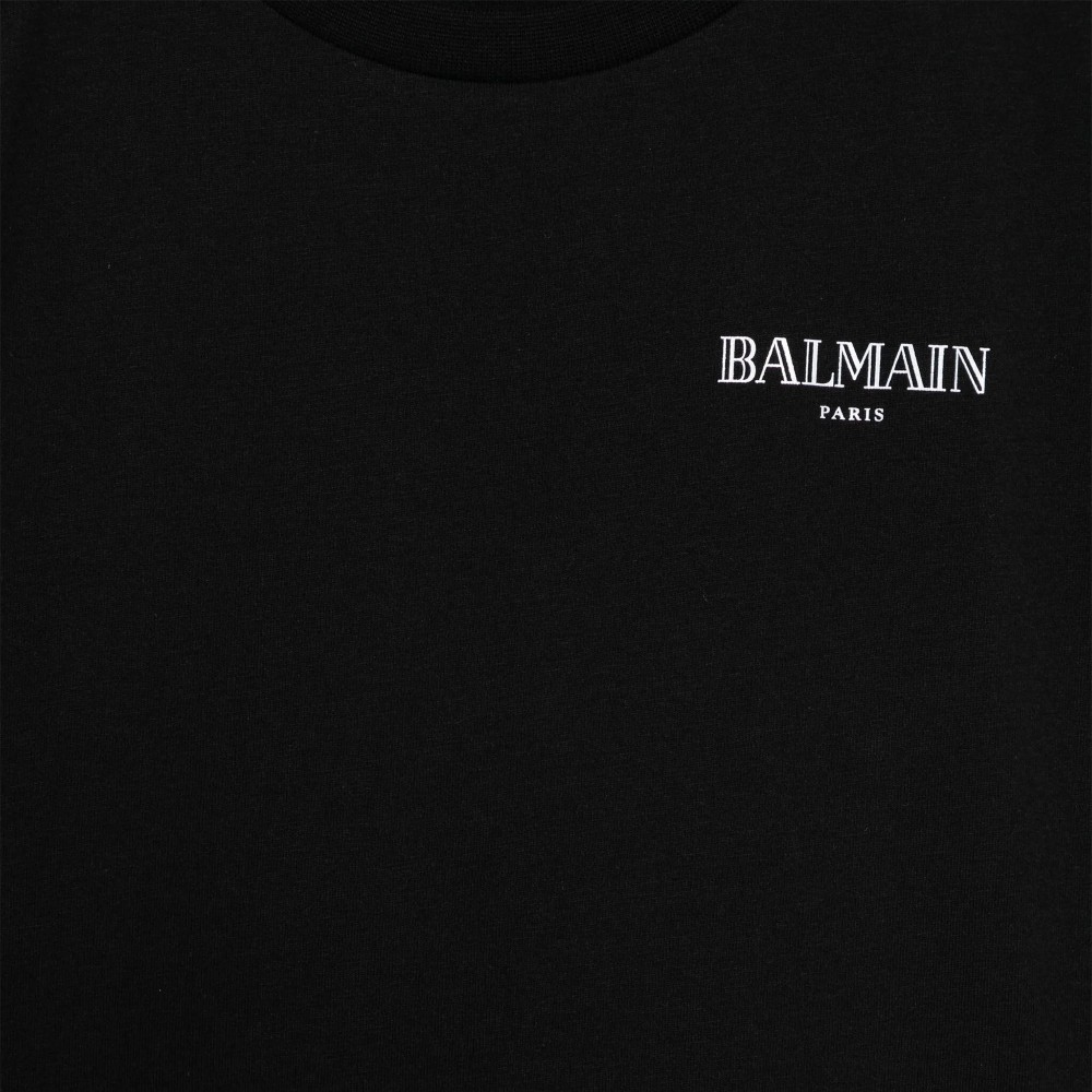 BALMAIN Canotta nera con logo bianco sul petto bambino