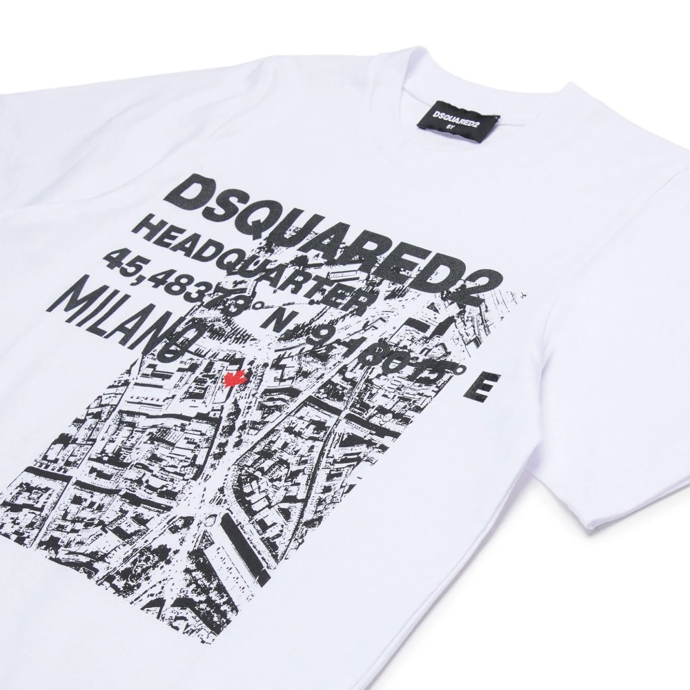 DSQUARED T-shirt bianca con stampa e logo bambini