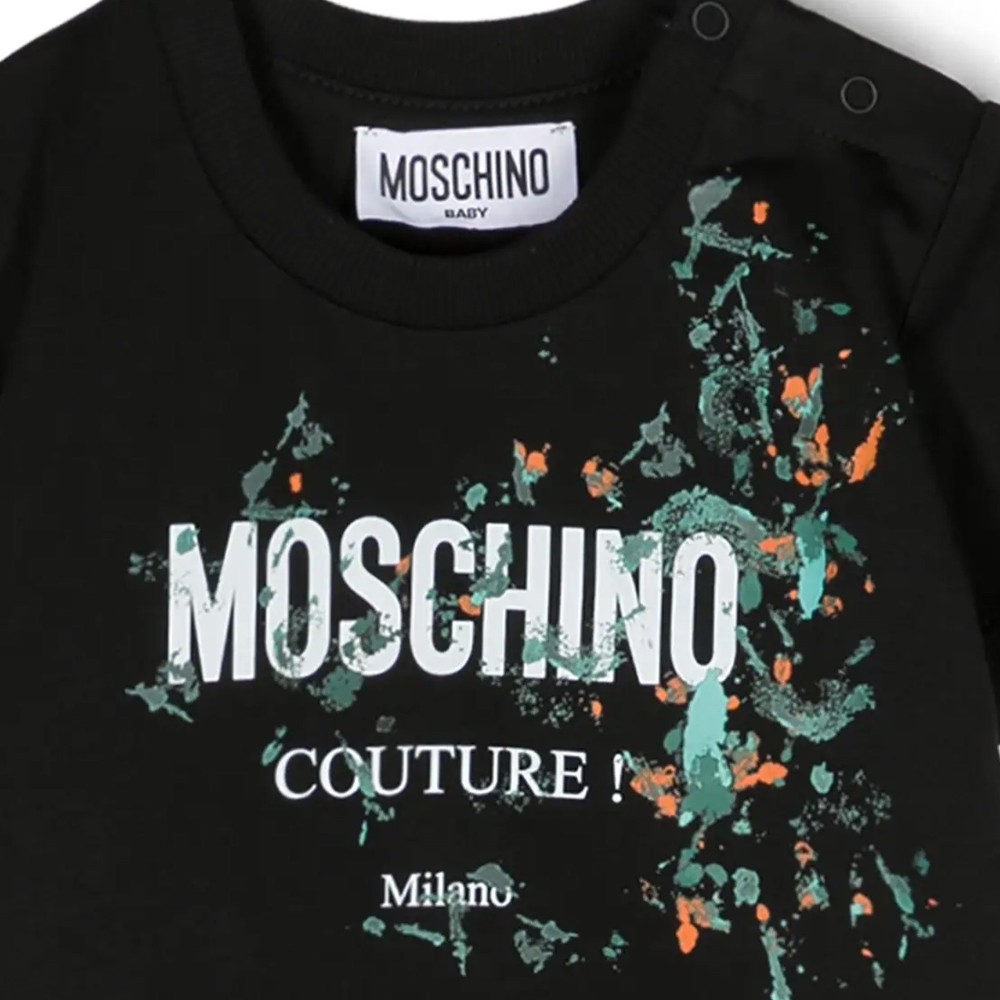 MOSCHINO T-shirt girocollo con stampa vernice nera neonato