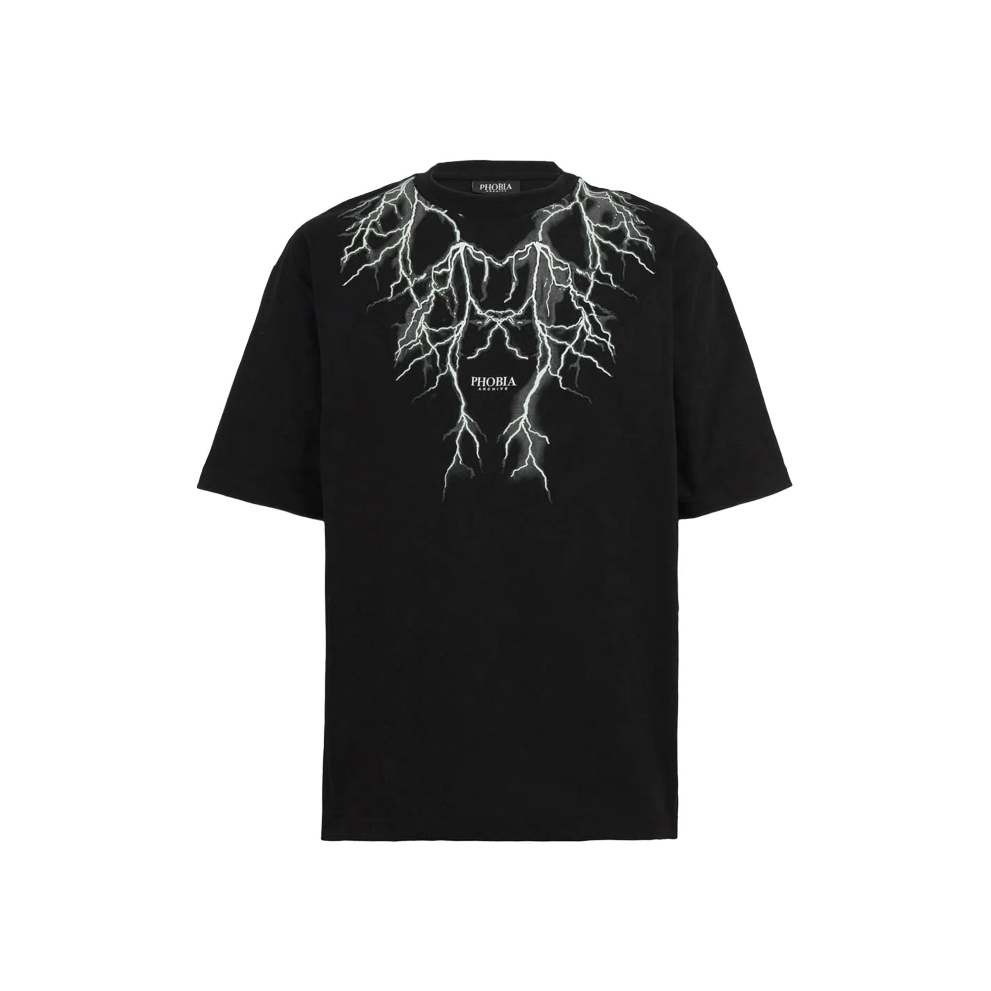 PHOBIA T-shirt nera con fulmini bianchi bambini