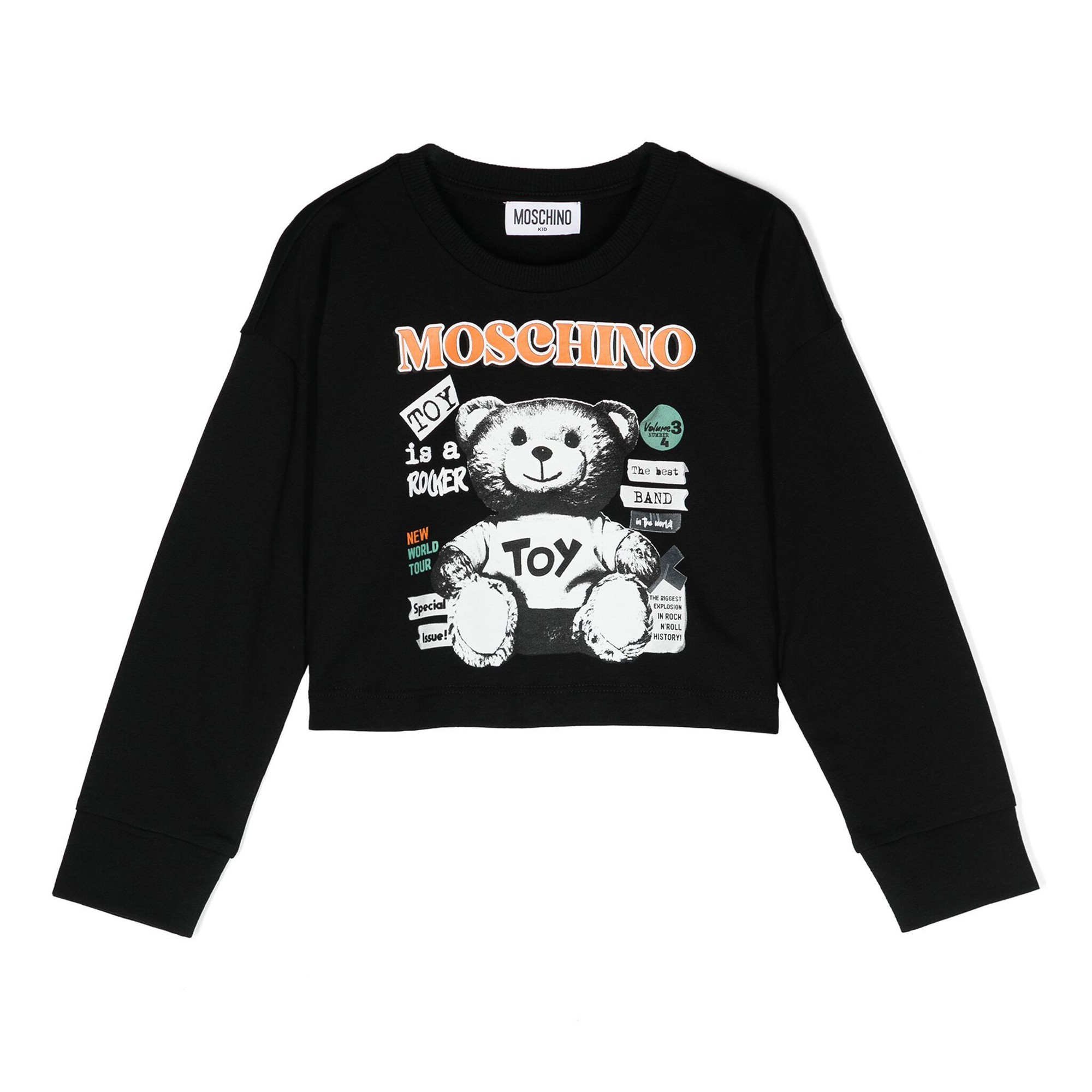 MOSCHINO Top nero corto con stampa Teddy Bear