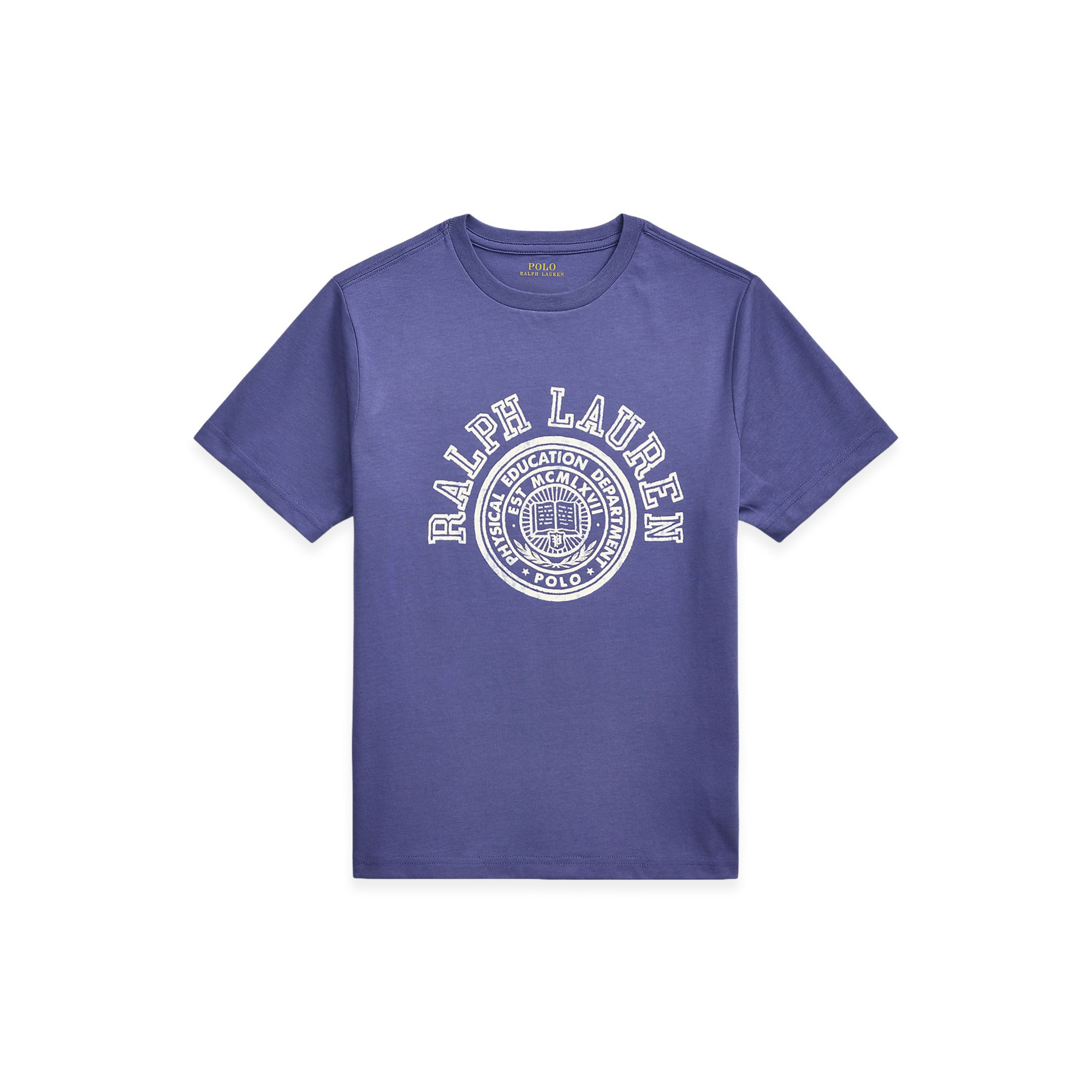 RALPH LAUREN T-shirt azzurra con stampa logo bambini