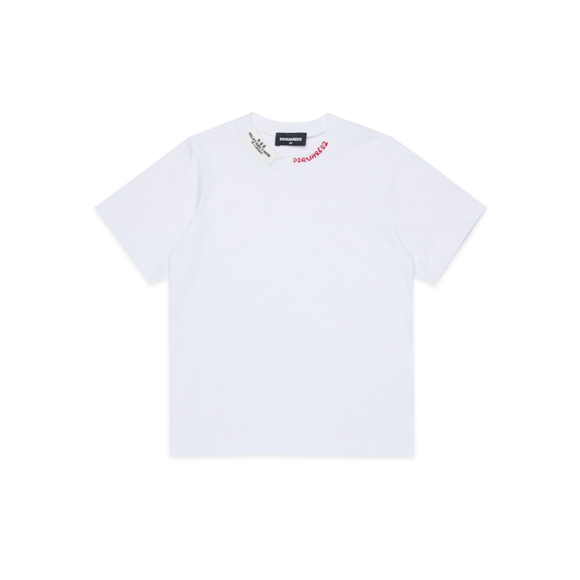 DSQUARED T-shirt bianca con ricamo logo bambino