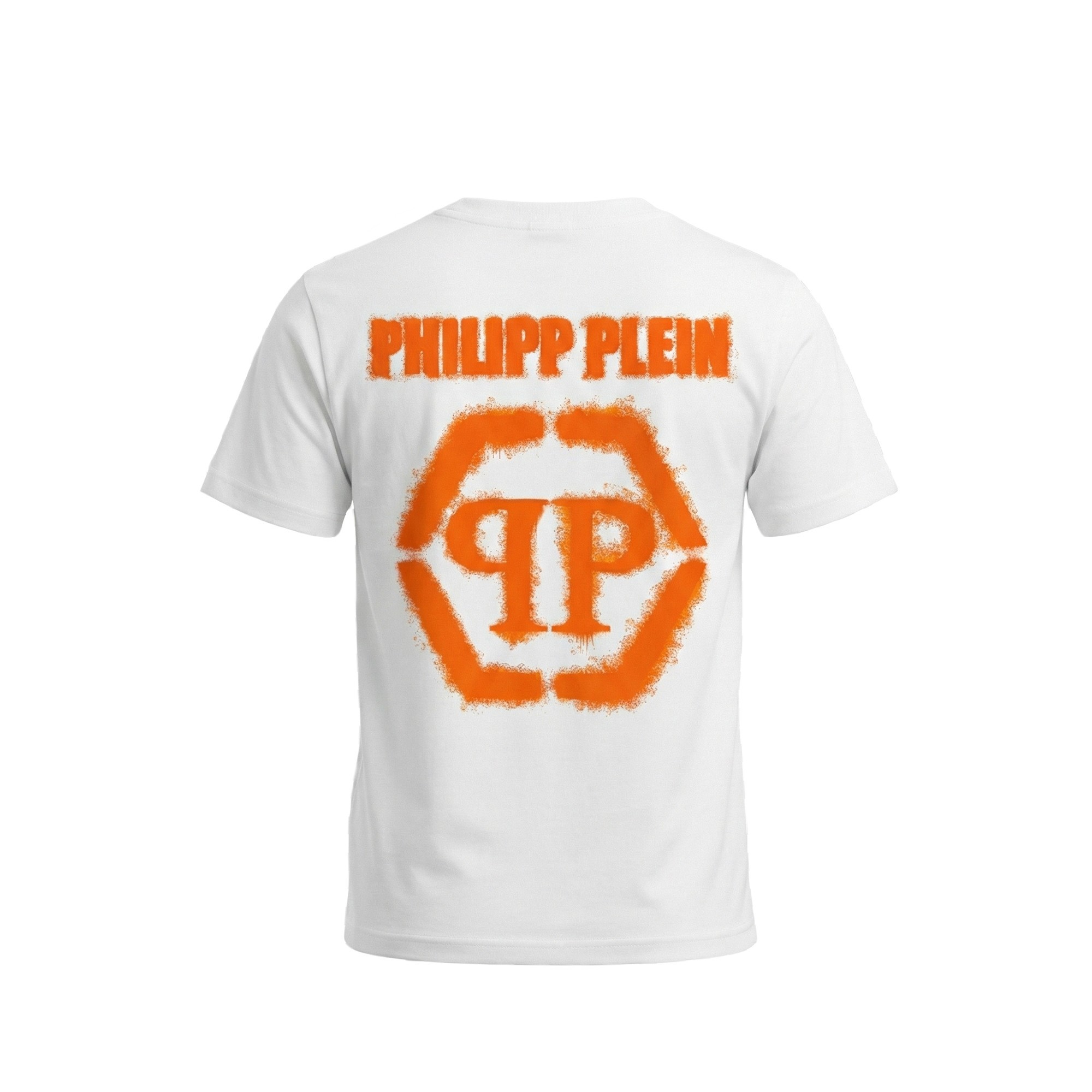 Logo arancione effetto spray sul petto,