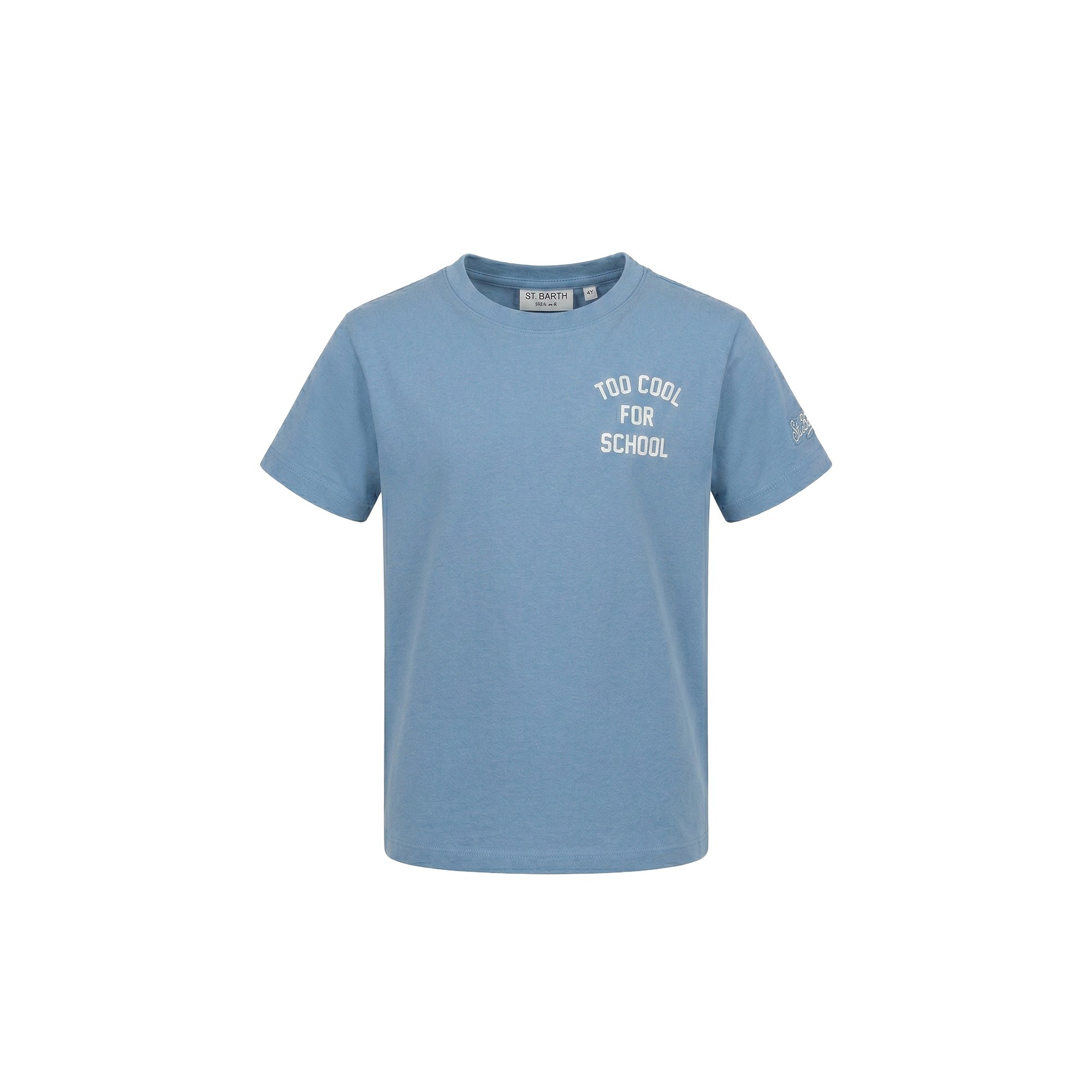 SAINT BARTH T-shirt celeste "Too Cool for School" bambino