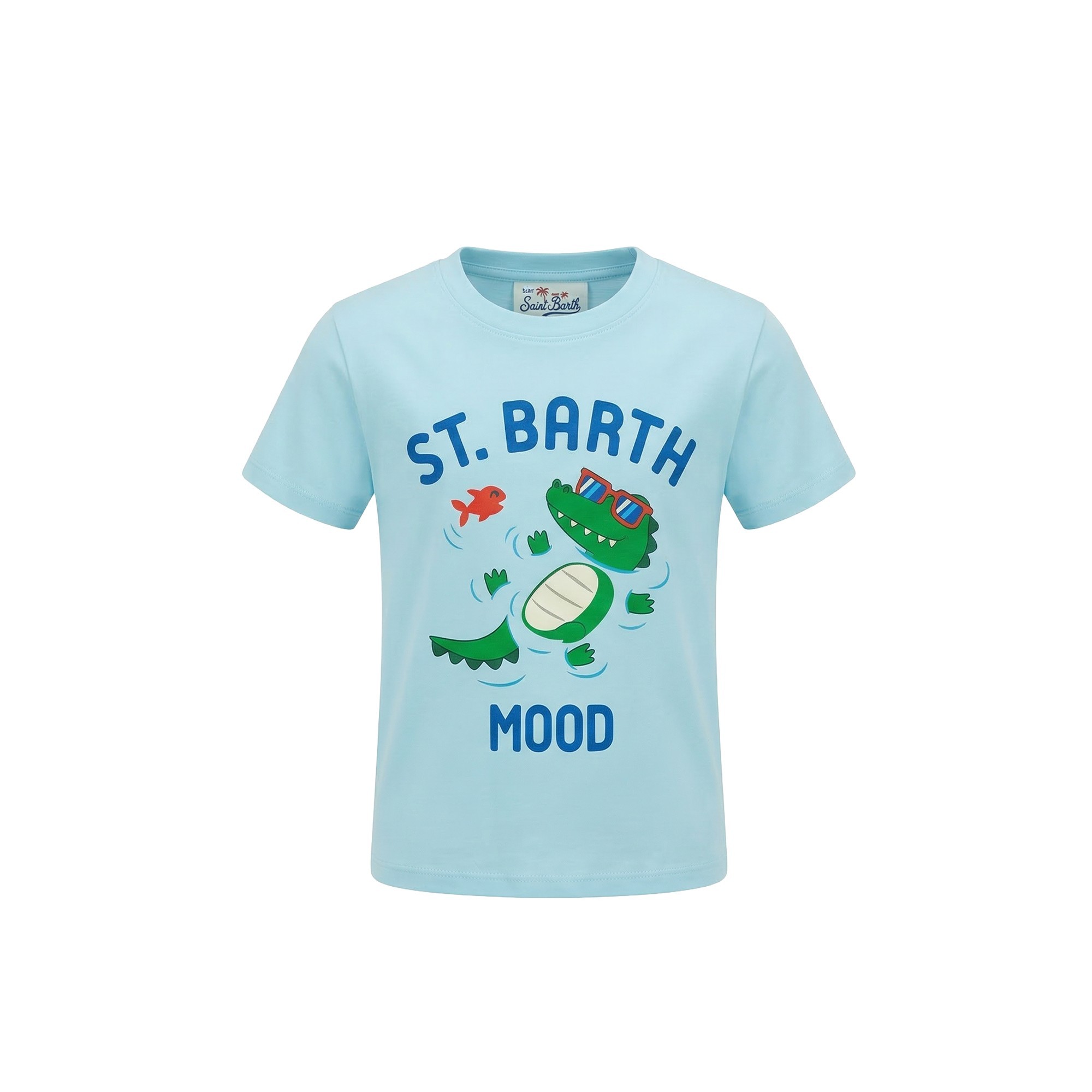 SAINT BARTH T-shirt celeste stampa Croco Chill bambino